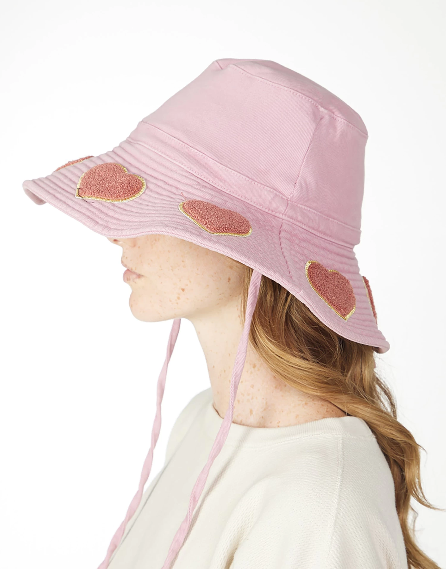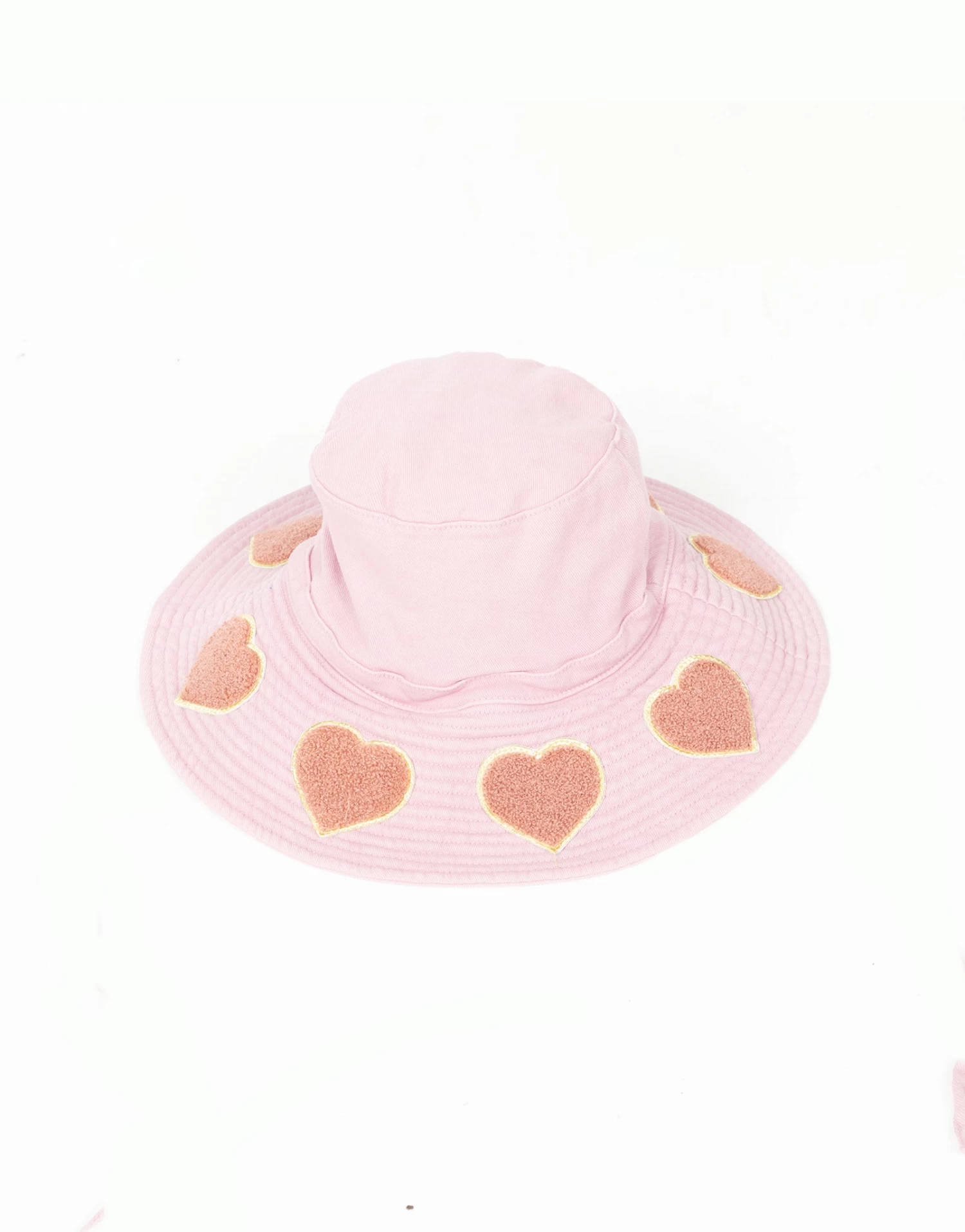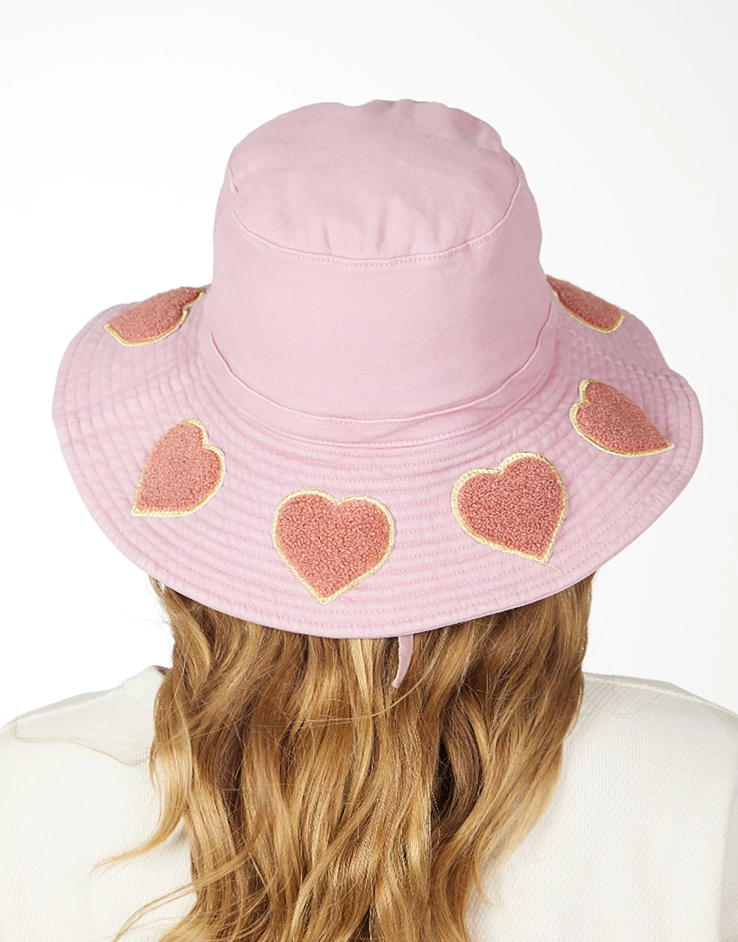 Adina- Bucket Hat W/ Chenille Heart Patches
