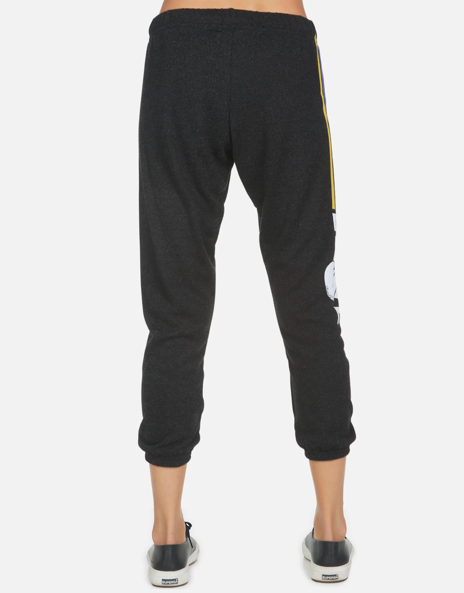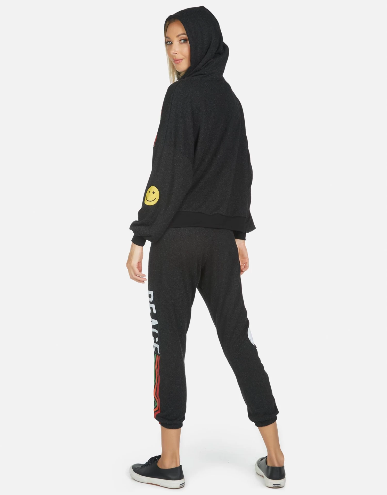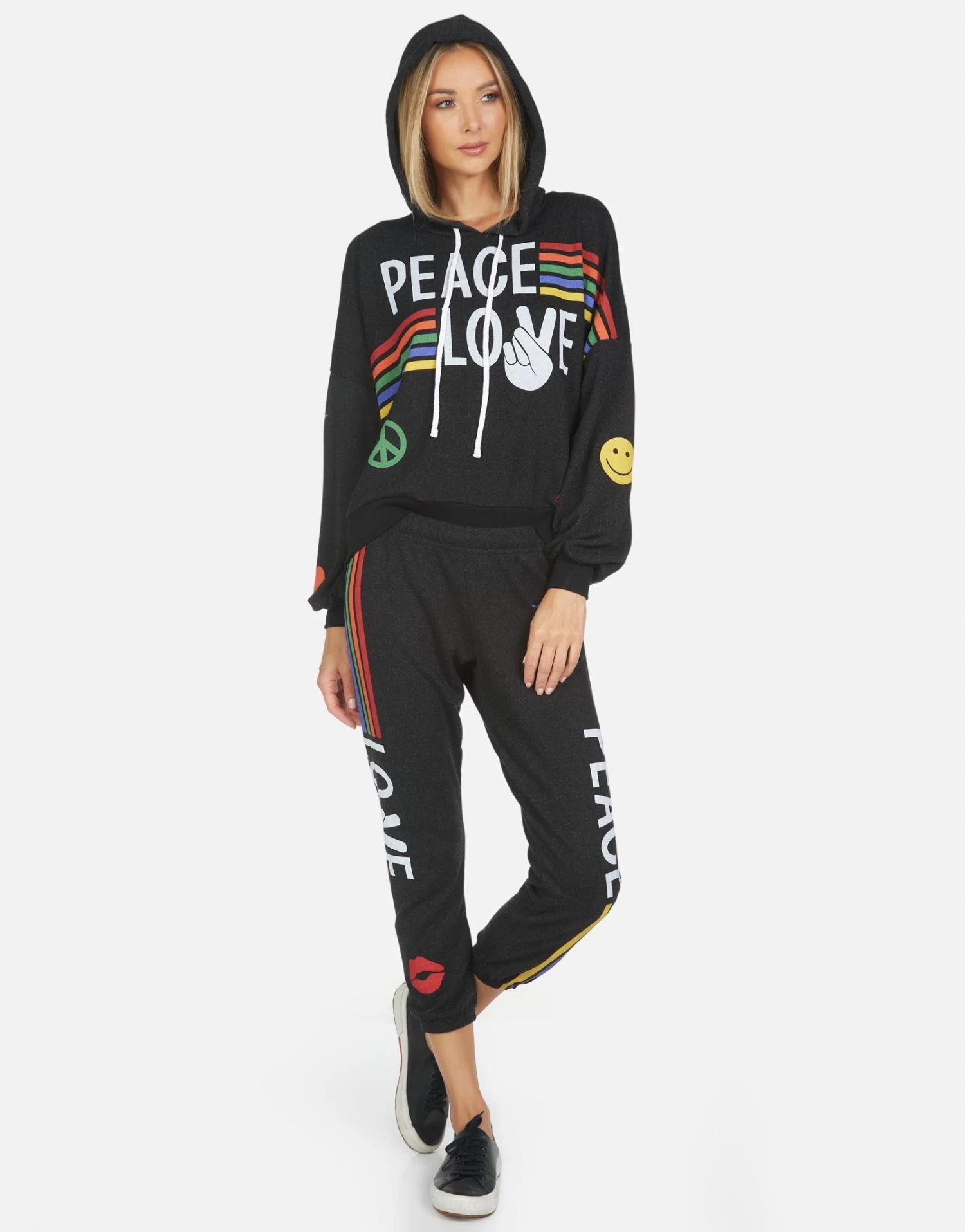 Peace Love Stripe Printed on Ultra Soft Lightweight Sweatpant in Black by Lauren Moshi.