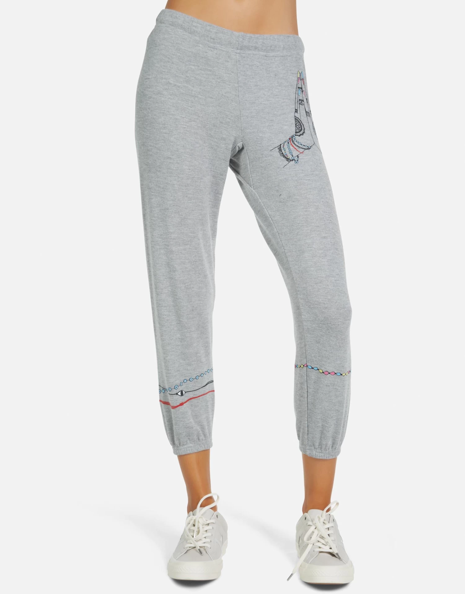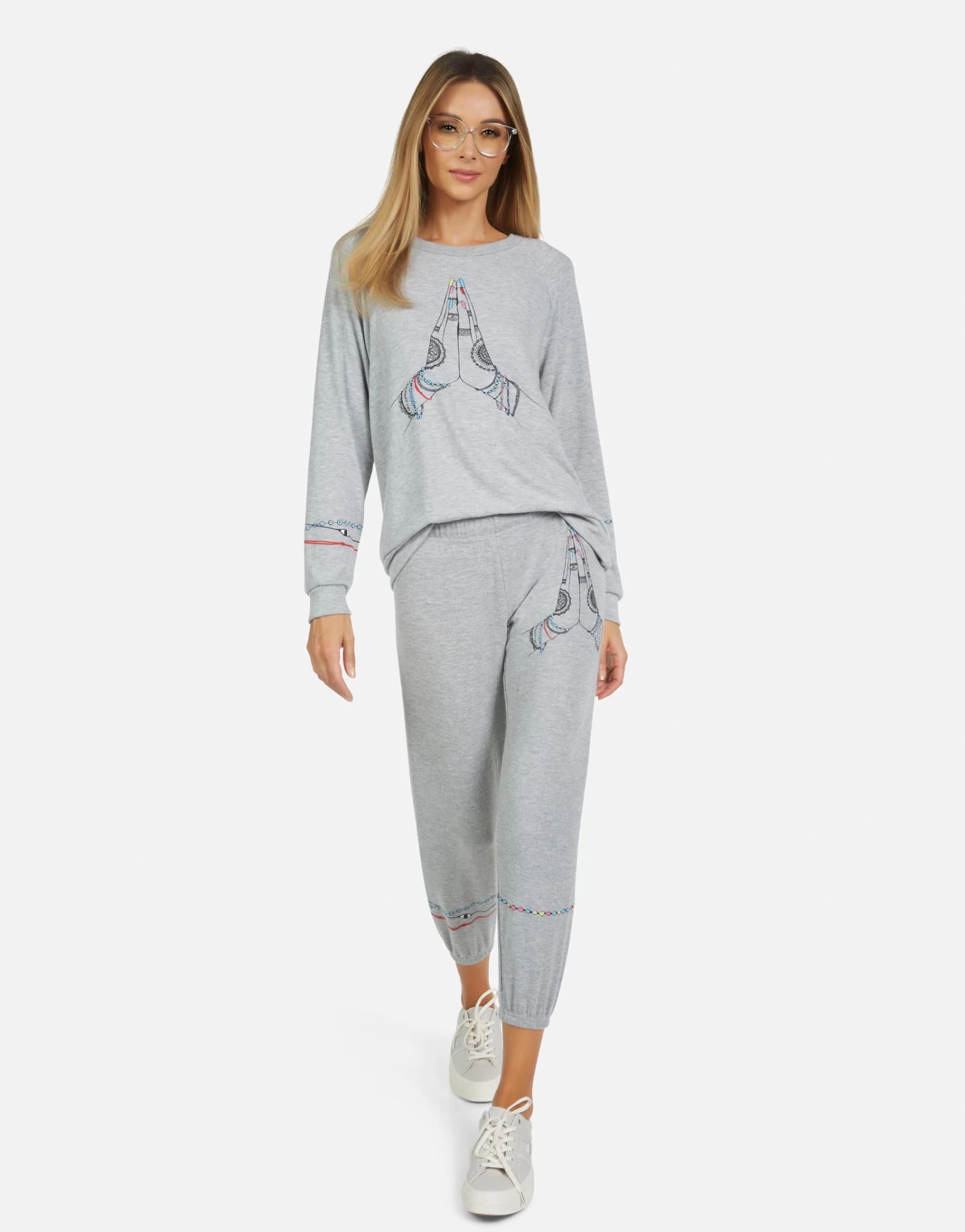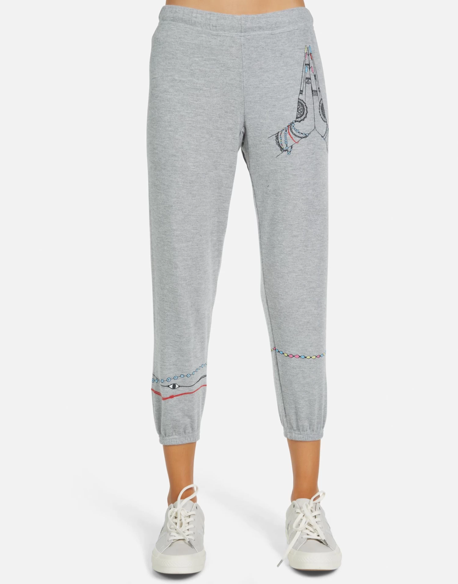 Prayer Hands Printed on Ultra Soft Lightweight Sweatpant in Heather Grey by Lauren Moshi.