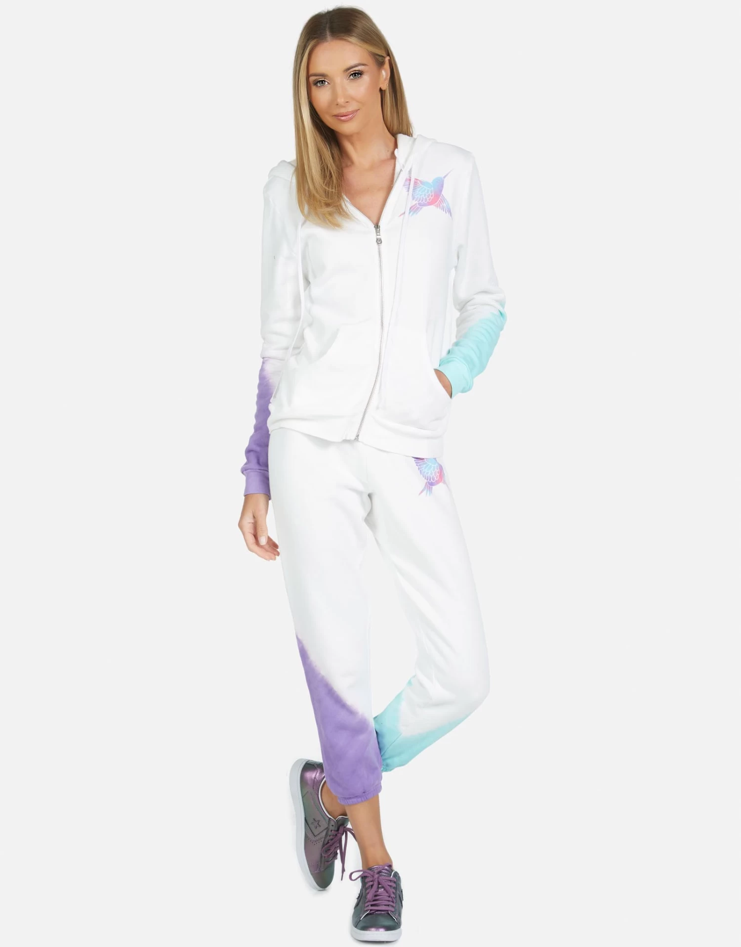Hummingbird Printed on Ultra Soft Lightweight Sweatpant in Purple/Teal Ombre by Lauren Moshi.