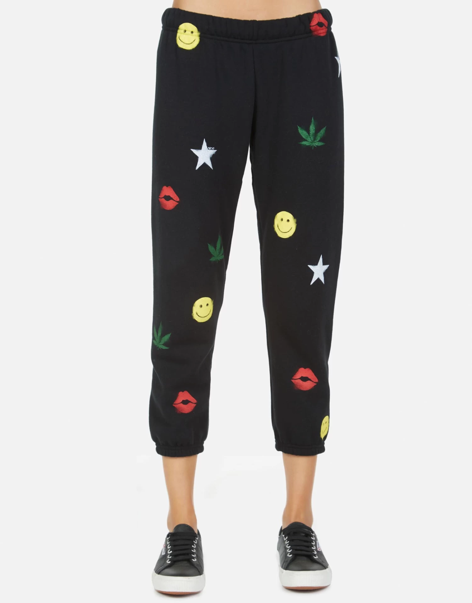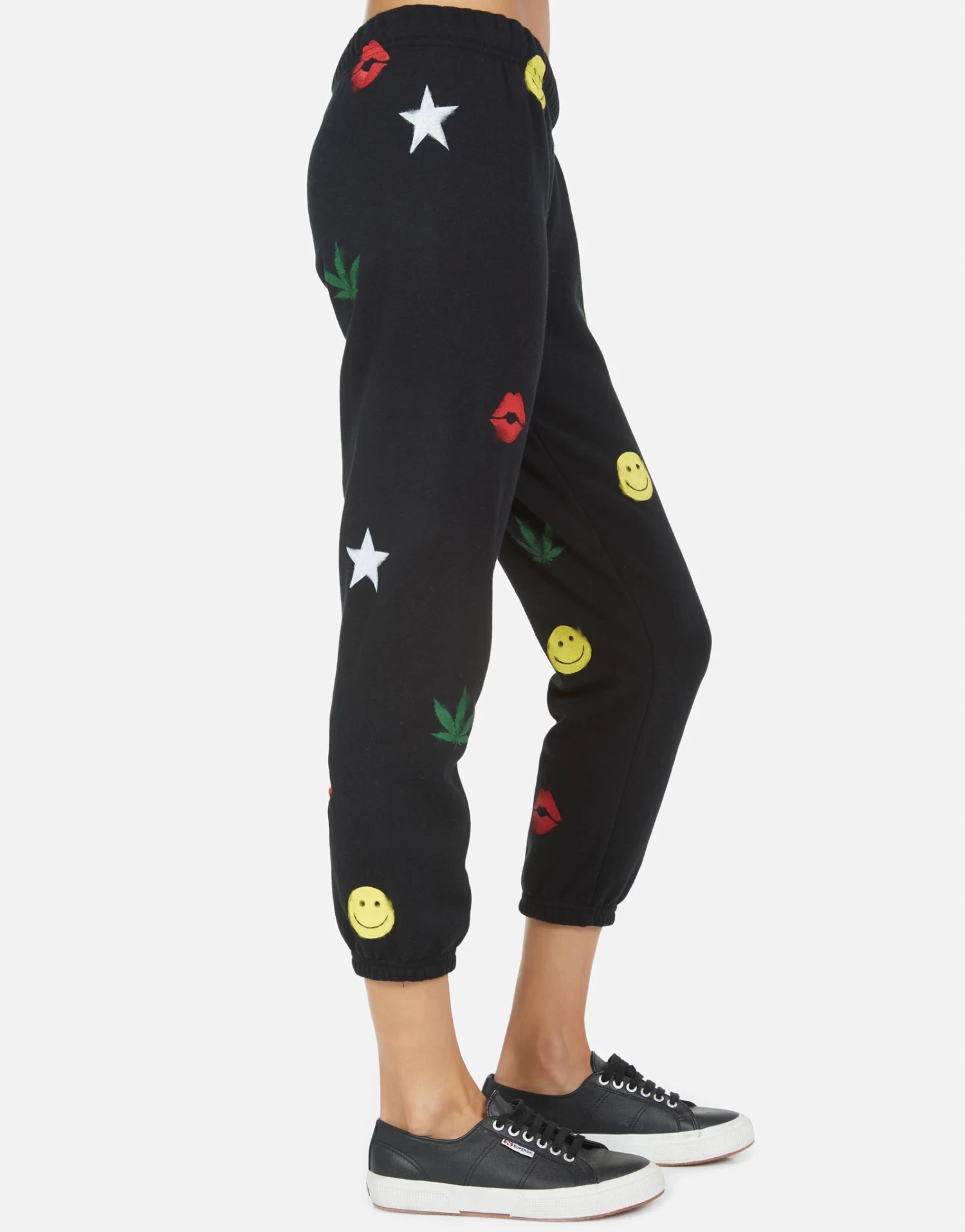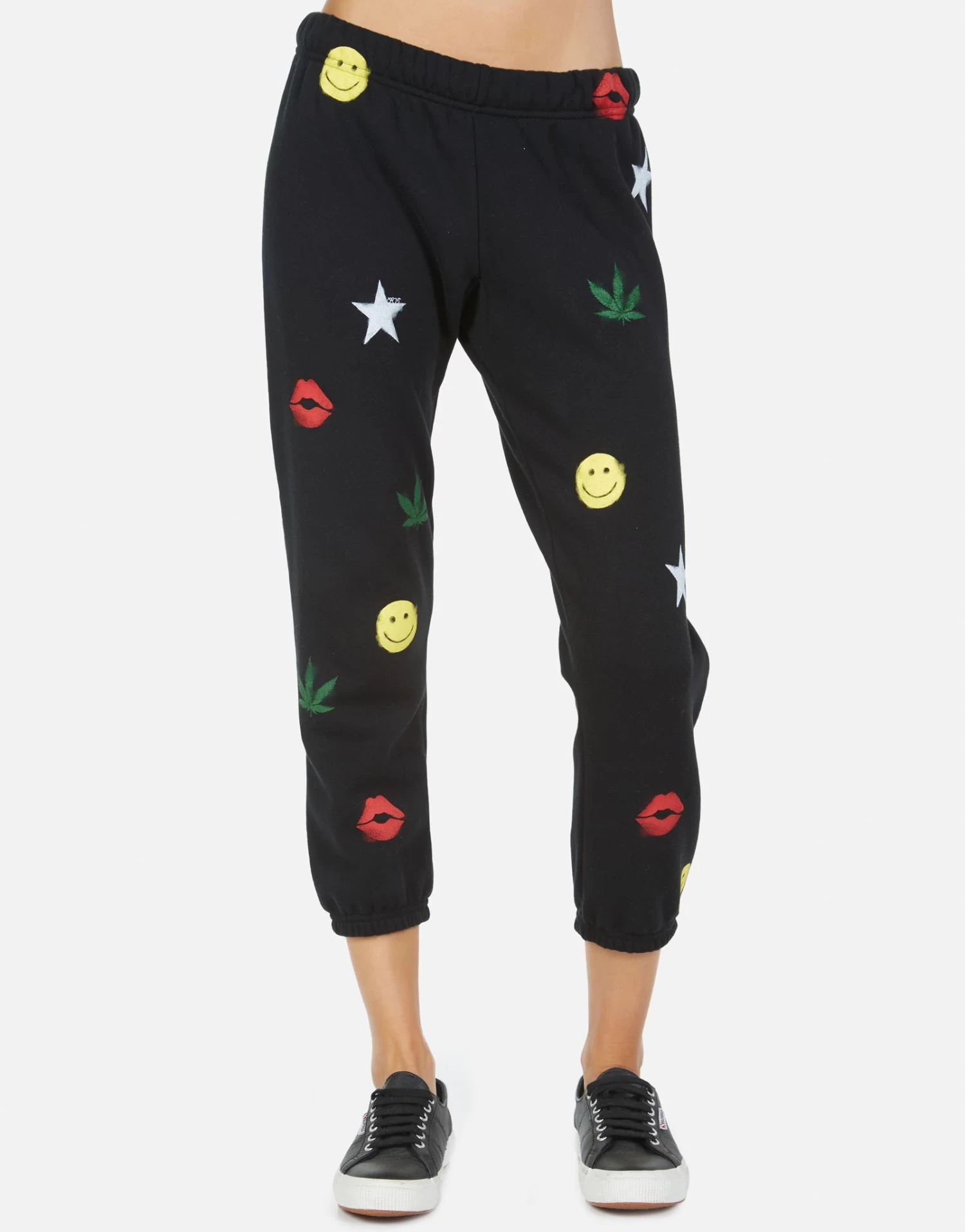 Spray Elements Printed on Ultra Soft Lightweight Sweatpants in Black by Lauren Moshi.