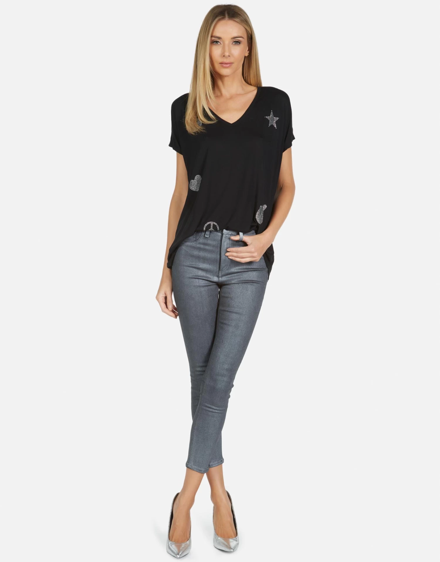 Crystal XO Elements Printed on Ultra Soft Lightweight Tee in Black by Lauren Moshi.