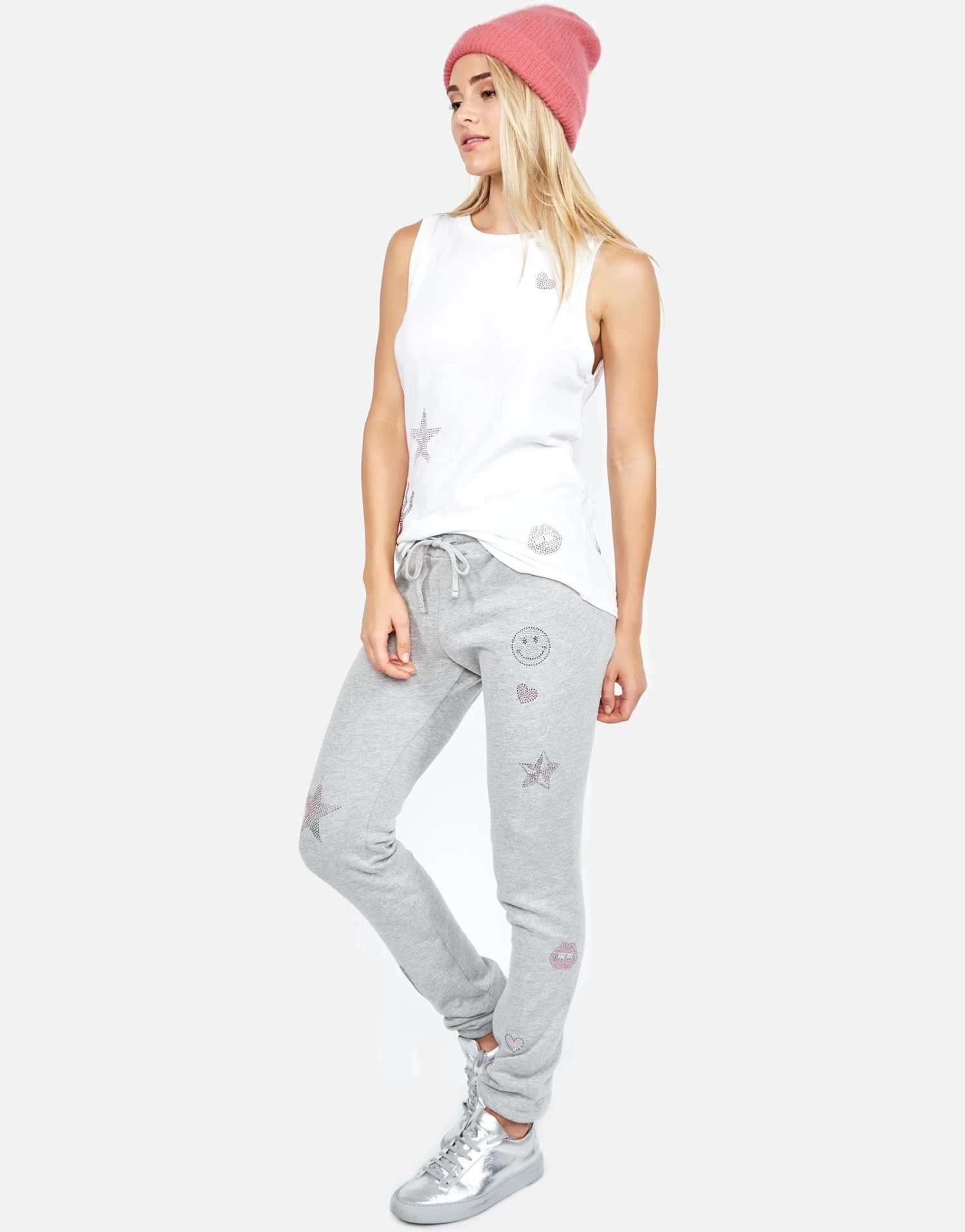 Colored Crystal Elements on Ultra Soft Lightweight Tank Tee in White by Lauren Moshi.