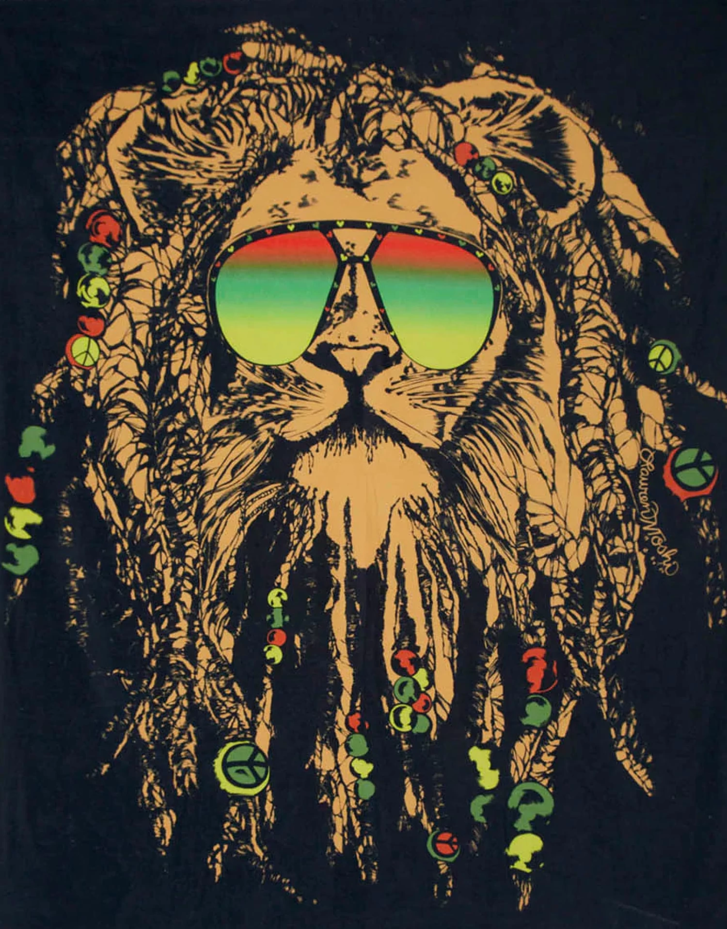 Brinkley Color Rasta Lion Square Blanket Towel For Two in Black by Lauren Moshi.