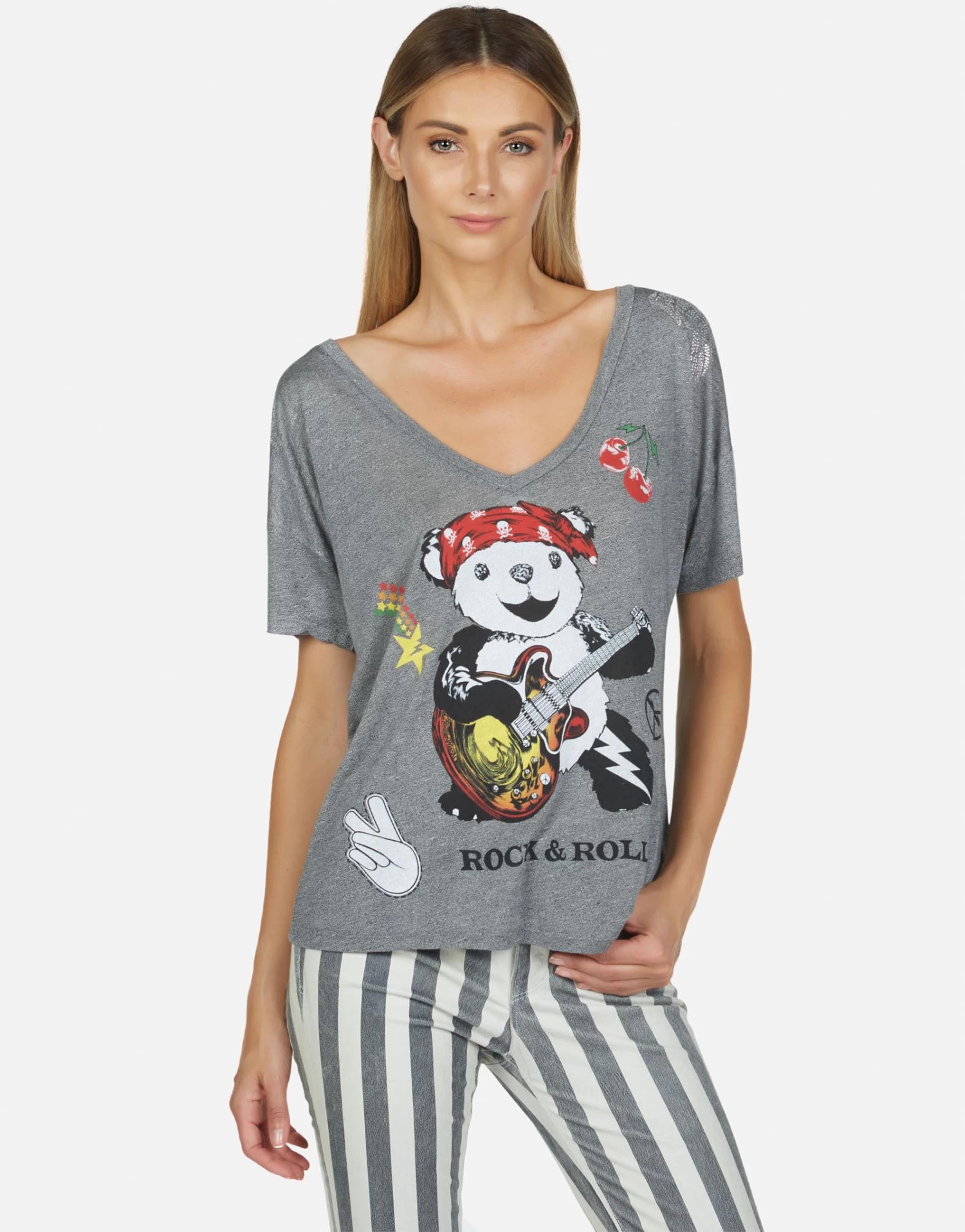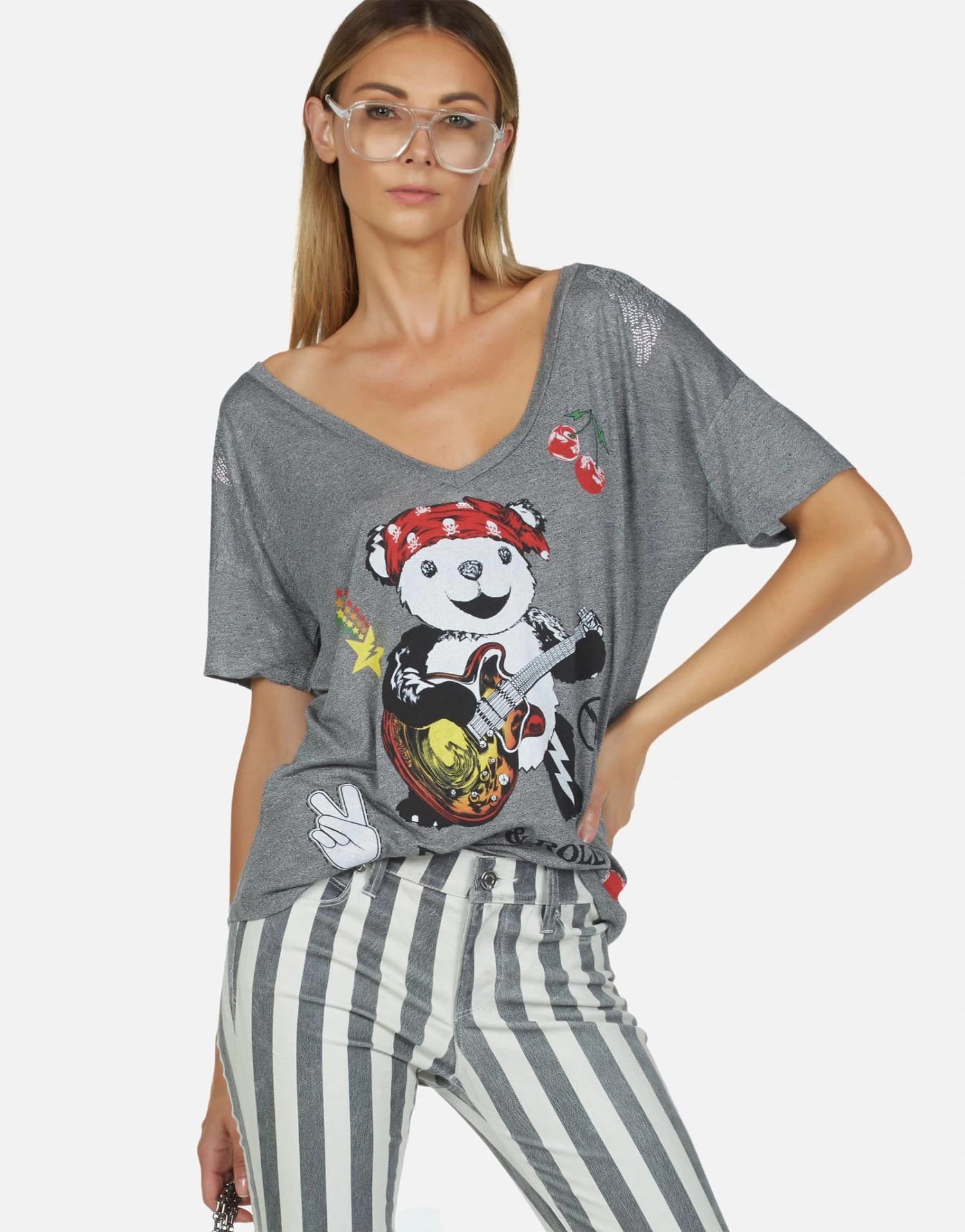 Rock Bear Printed on Ultra Soft Lightweight Tee in Heather Grey by Lauren Moshi.