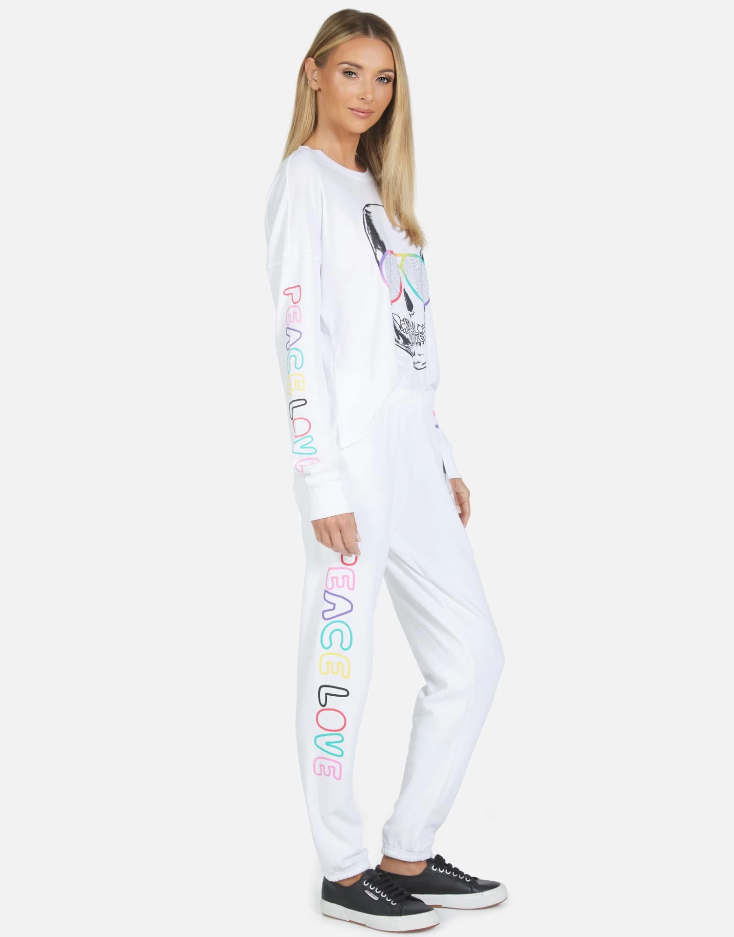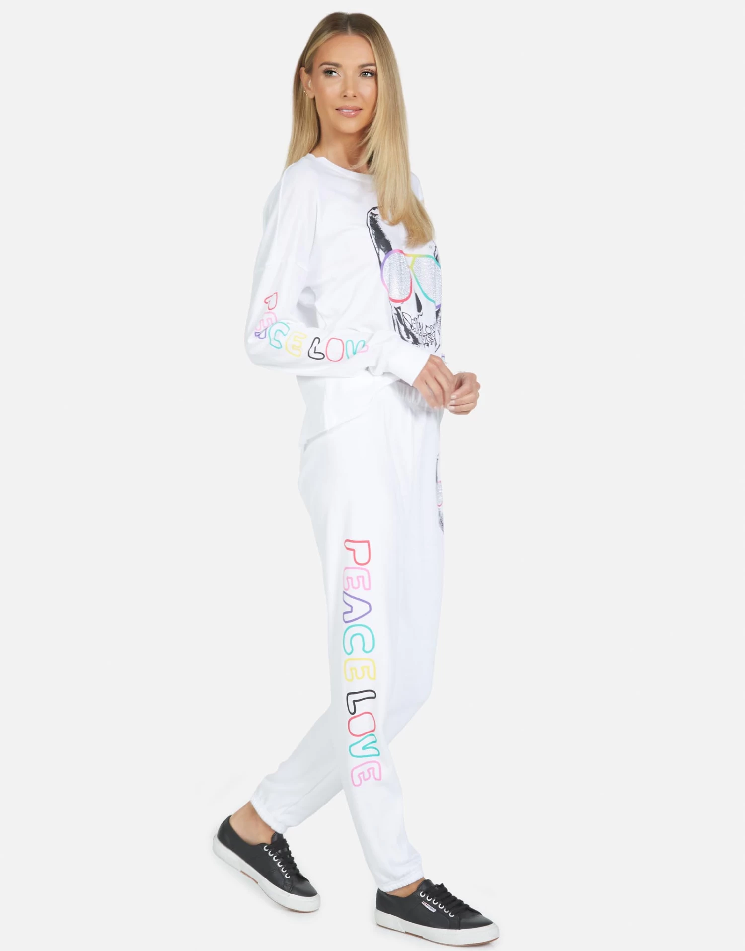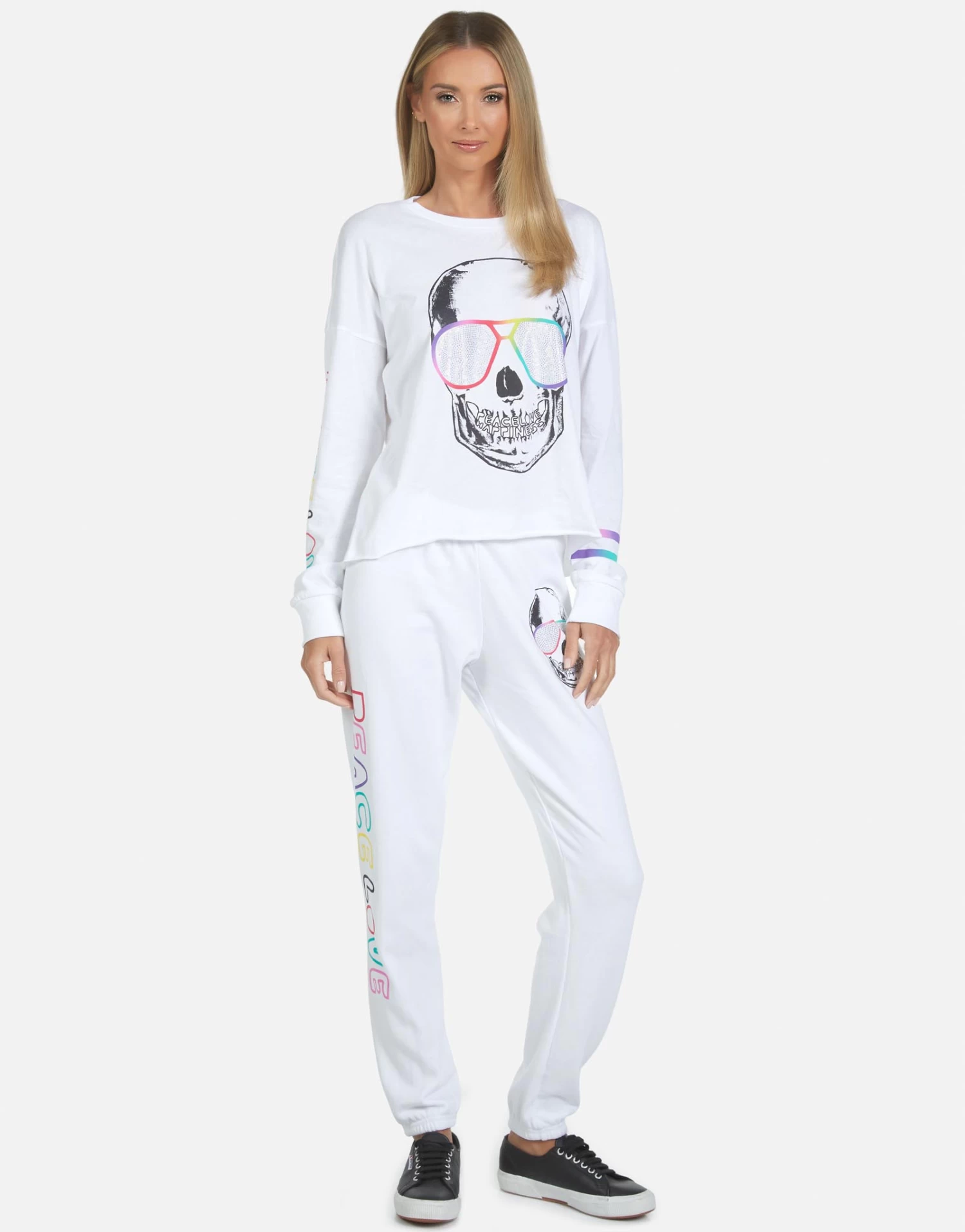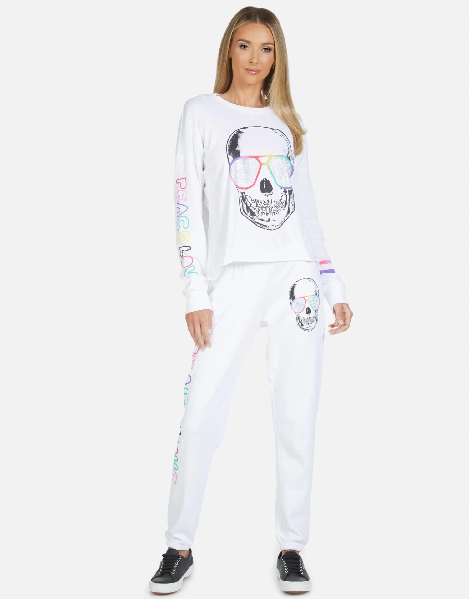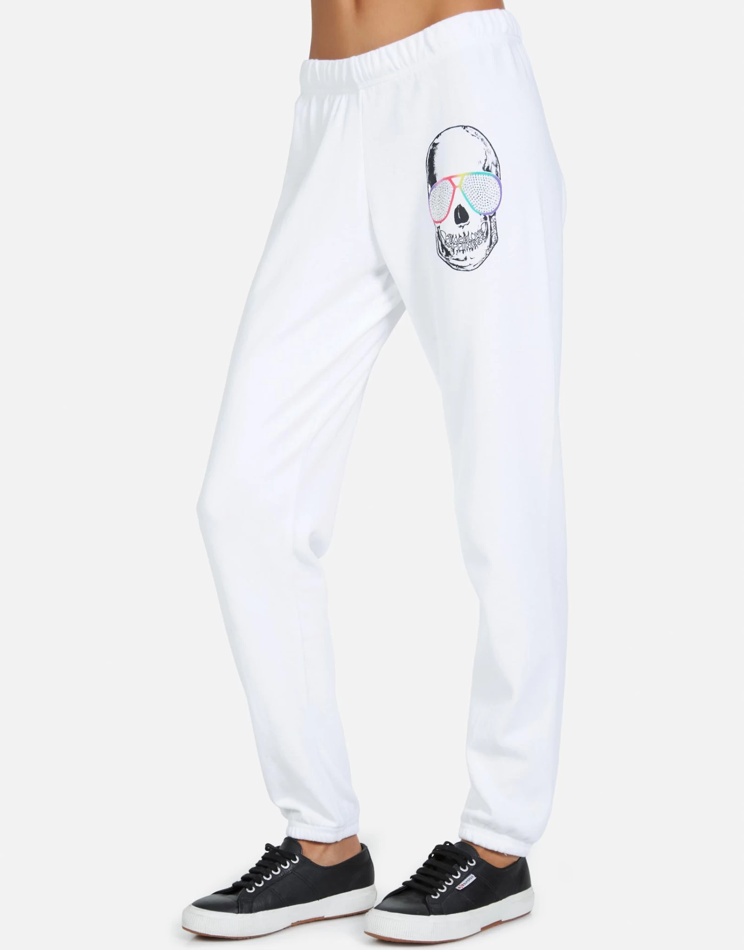 Cool Skull Printed on Ultra Soft Lightweight Sweatpant in White by Lauren Moshi.