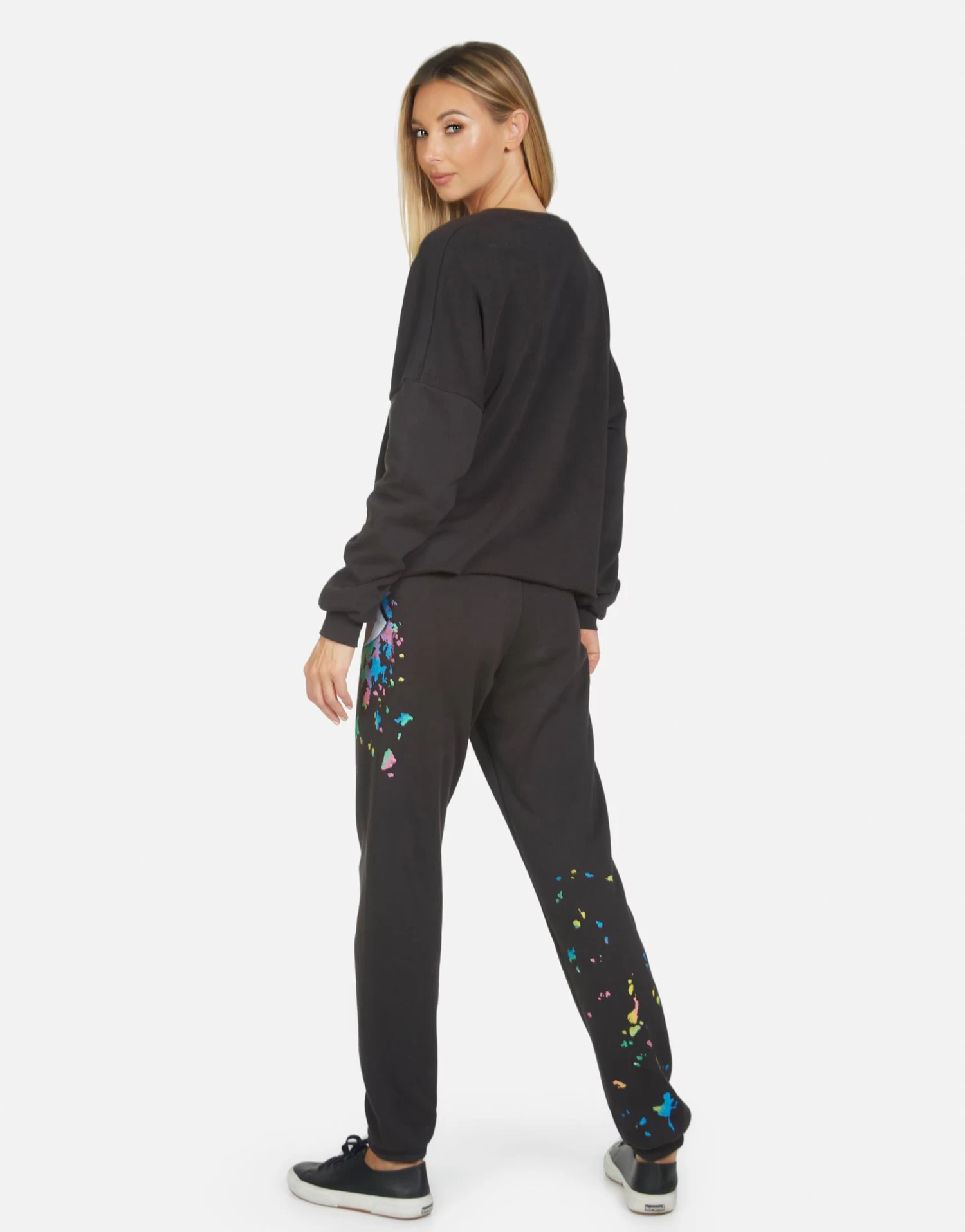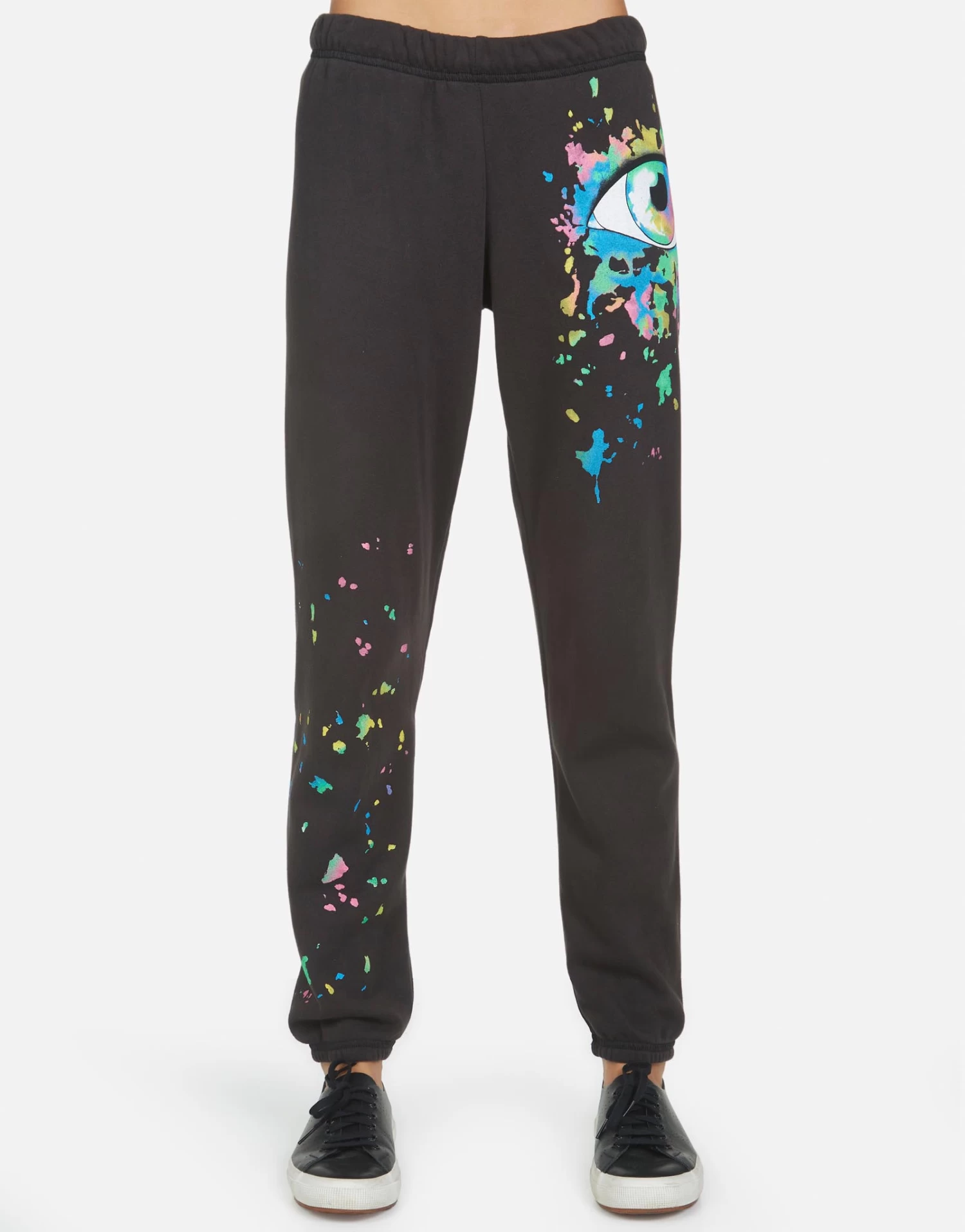Watercolor Eye Printed on Ultra Soft Lightweight Sweatpant in Onyx by Lauren Moshi.