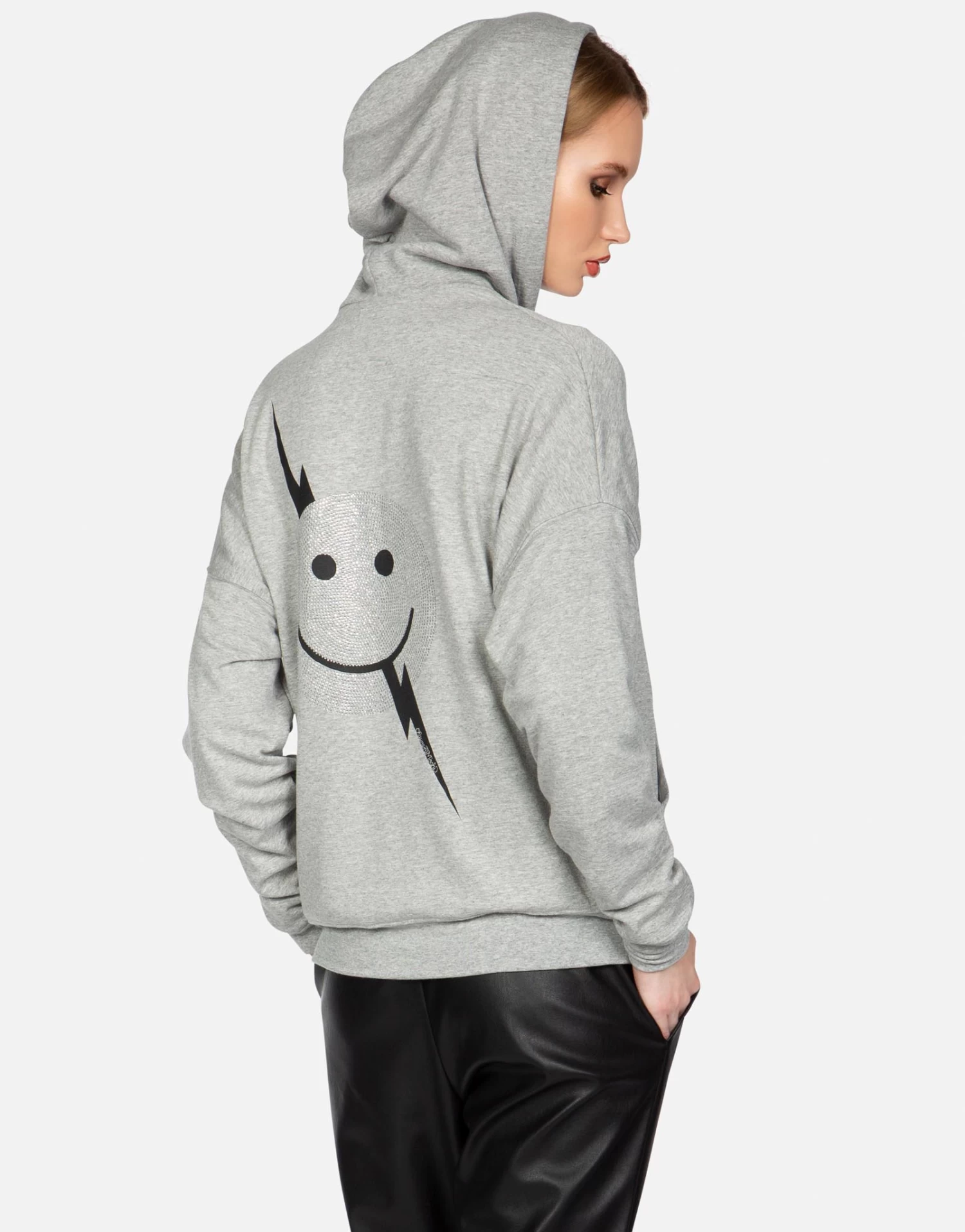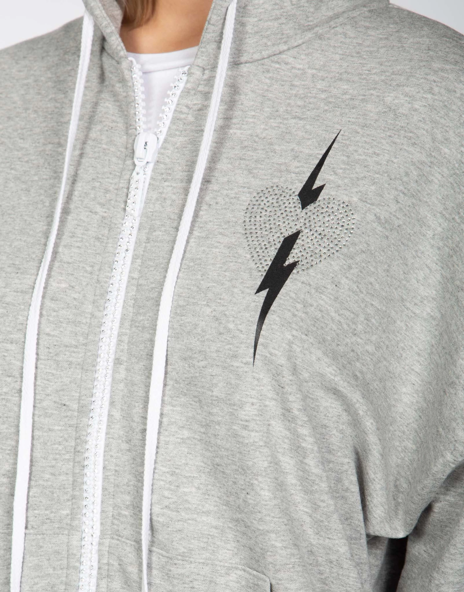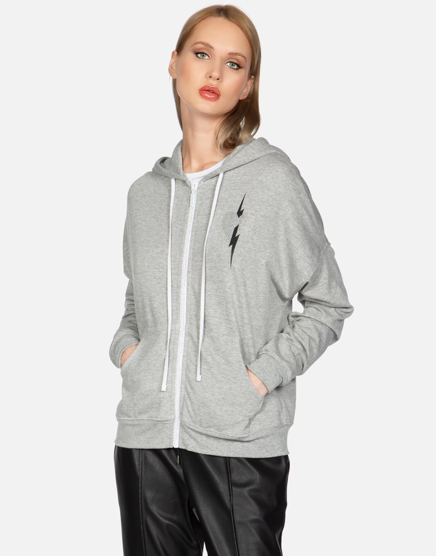 Happy Lightning Love Printed on Ultra Soft Lightweight Hoodie in Heather Grey by Lauren Moshi.
