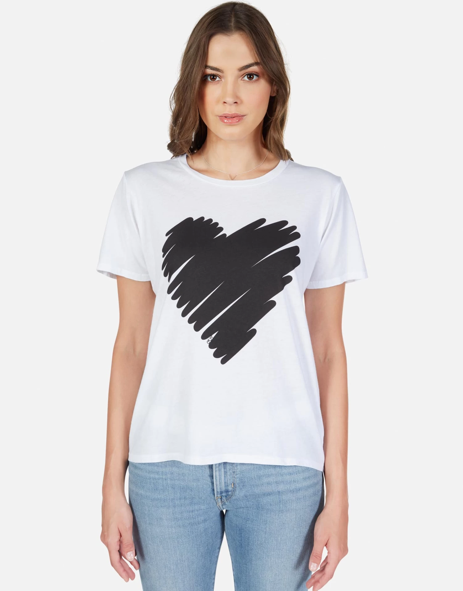 Scribble Heart Printed on Ultra Soft Lightweight Tee in White by Lauren Moshi.