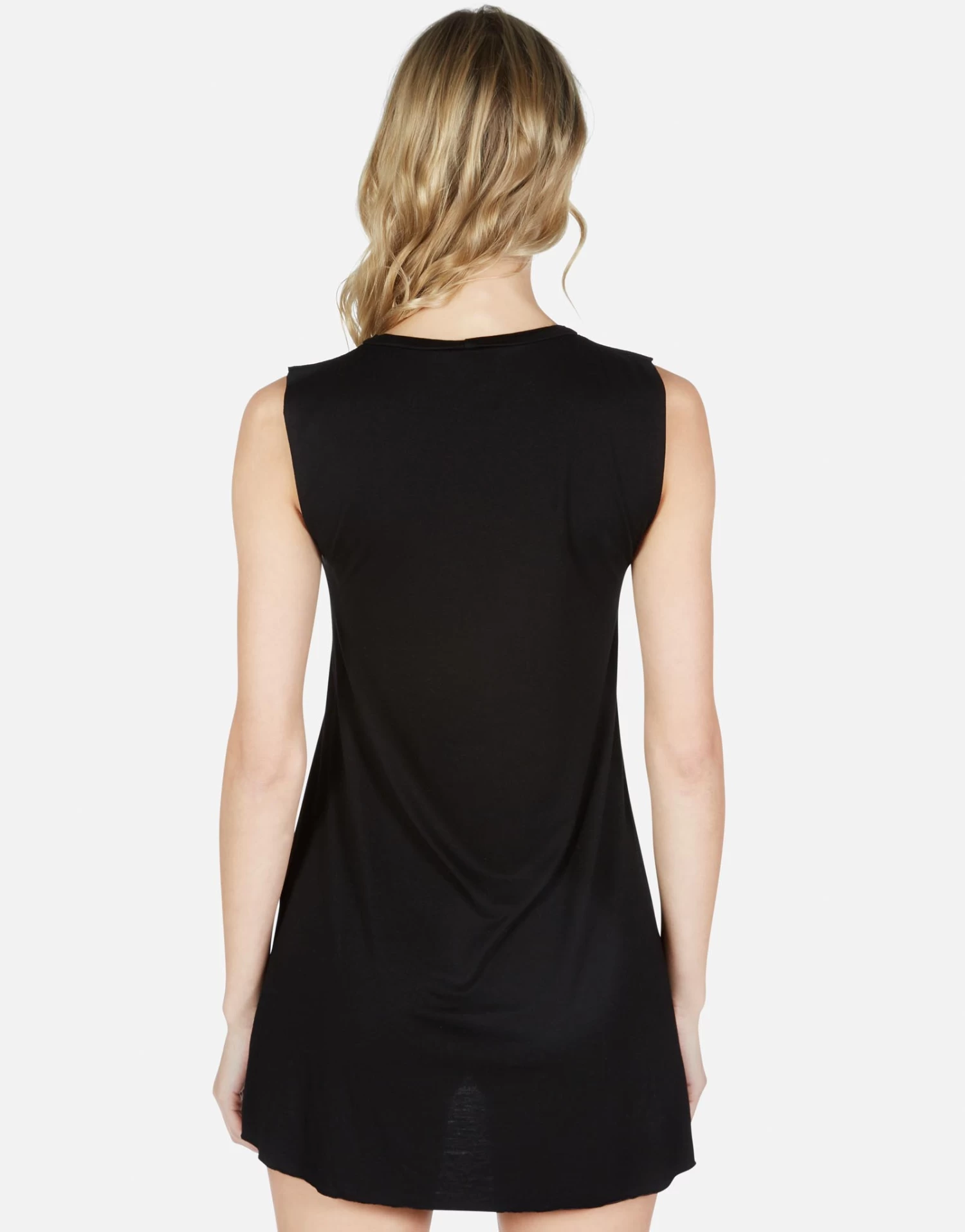 AC/DC Devil Are You Ready Printed on Ultra Soft Lightweight Mini Dress in Black by Lauren Moshi.