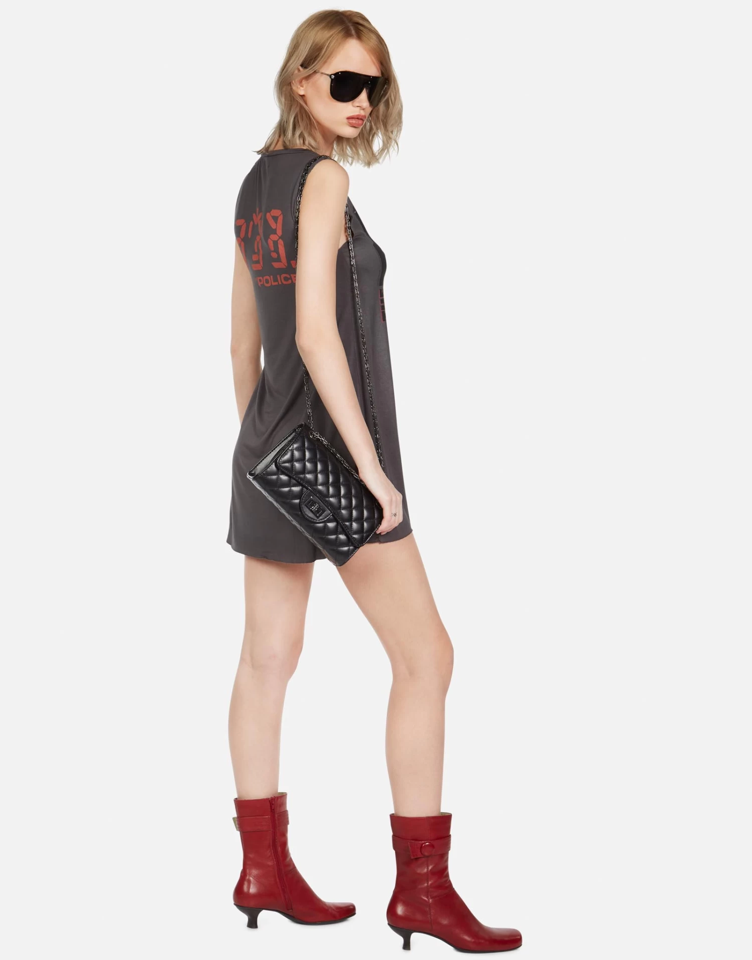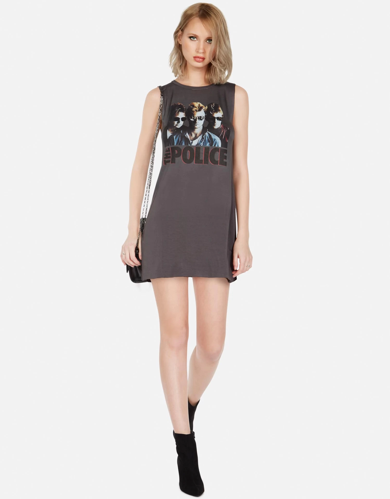 The Police Printed on Ultra Soft Lightweight Mini Dress in Light Onyx by Lauren Moshi.