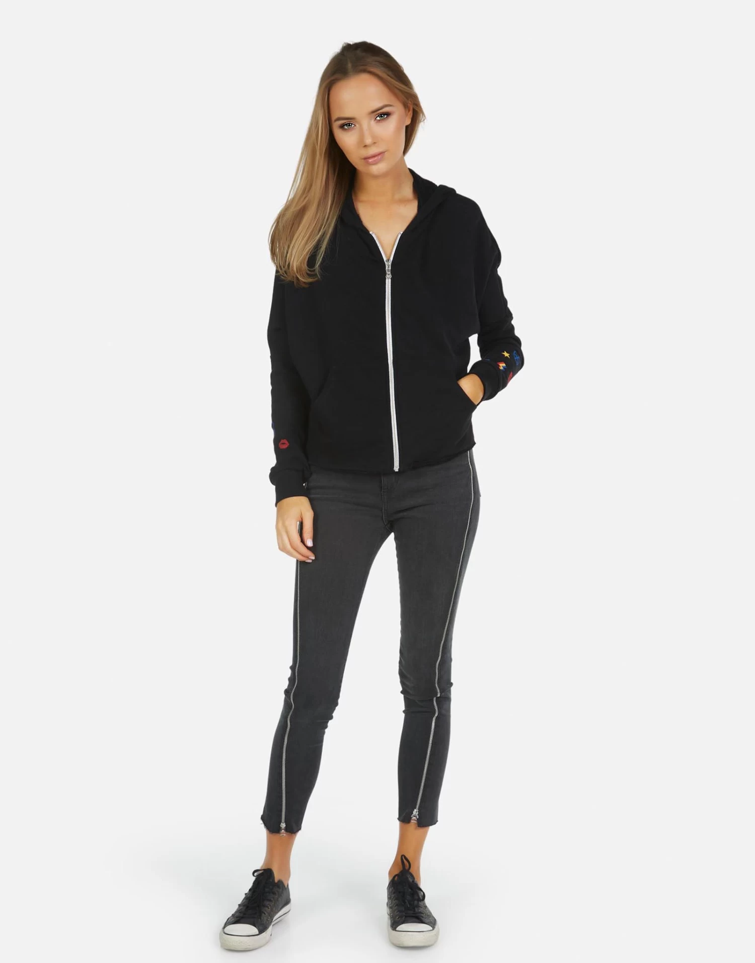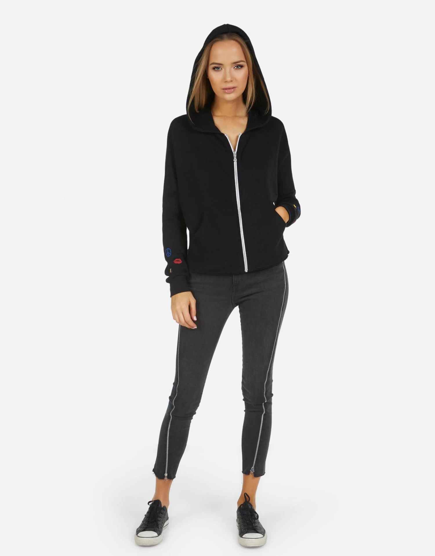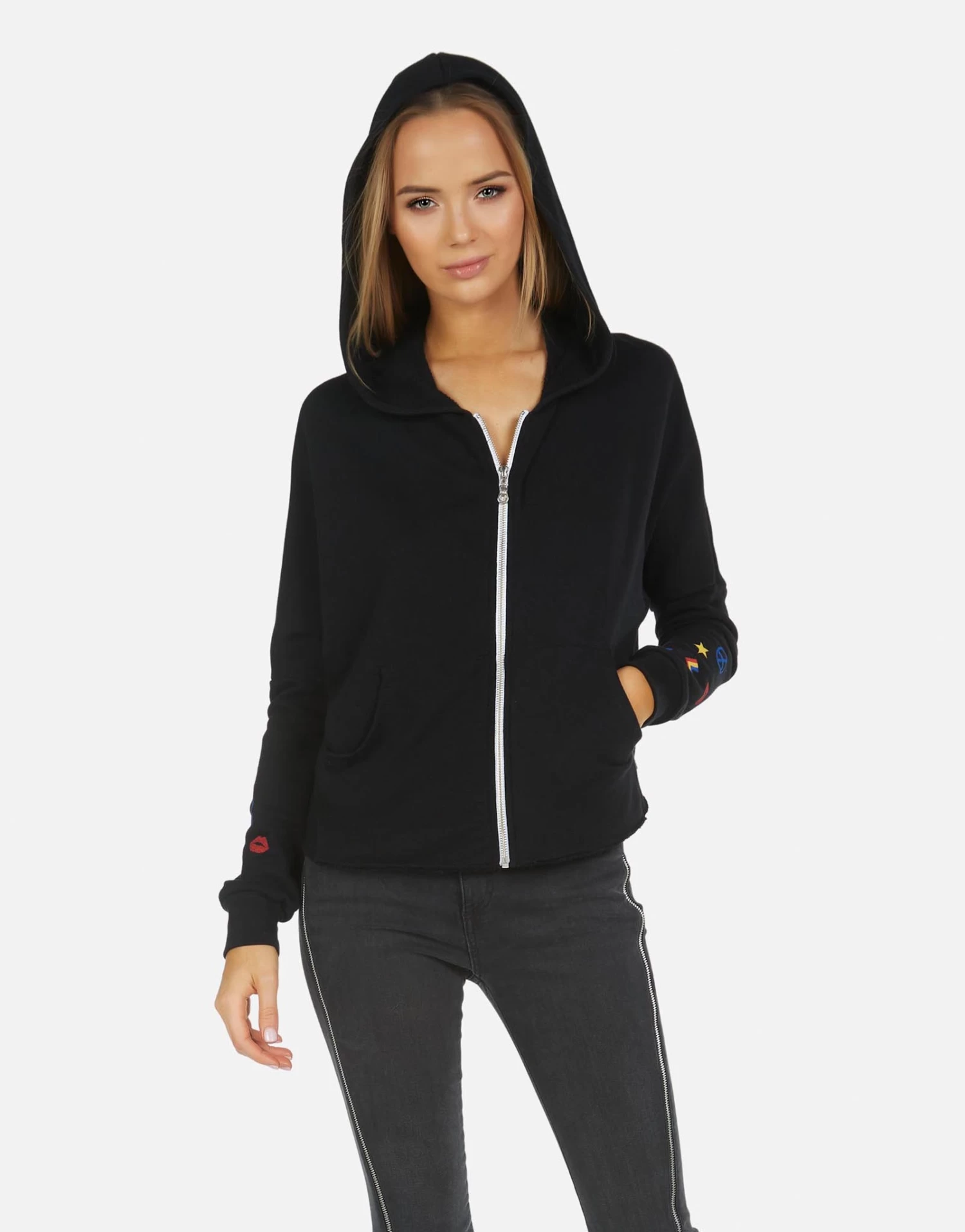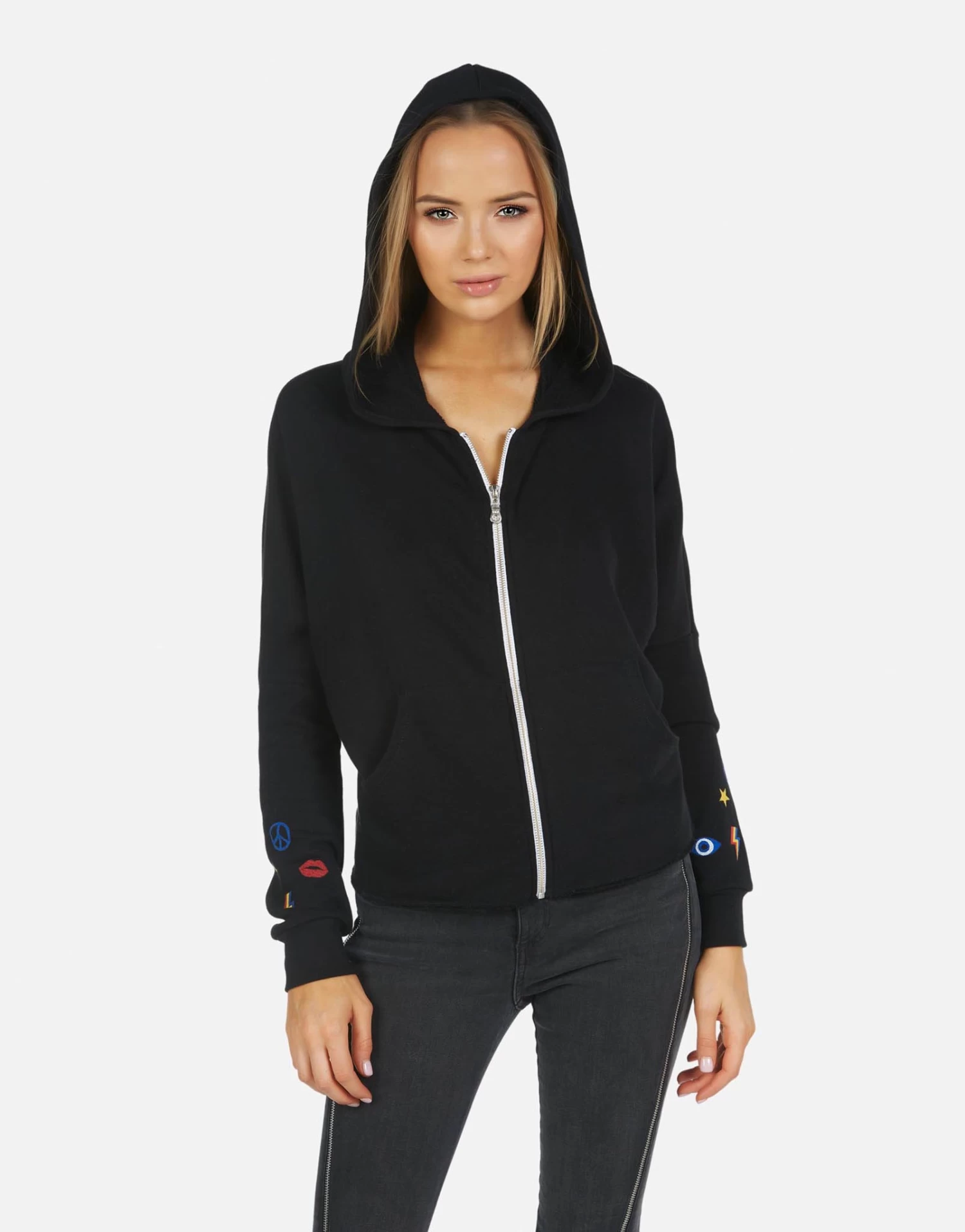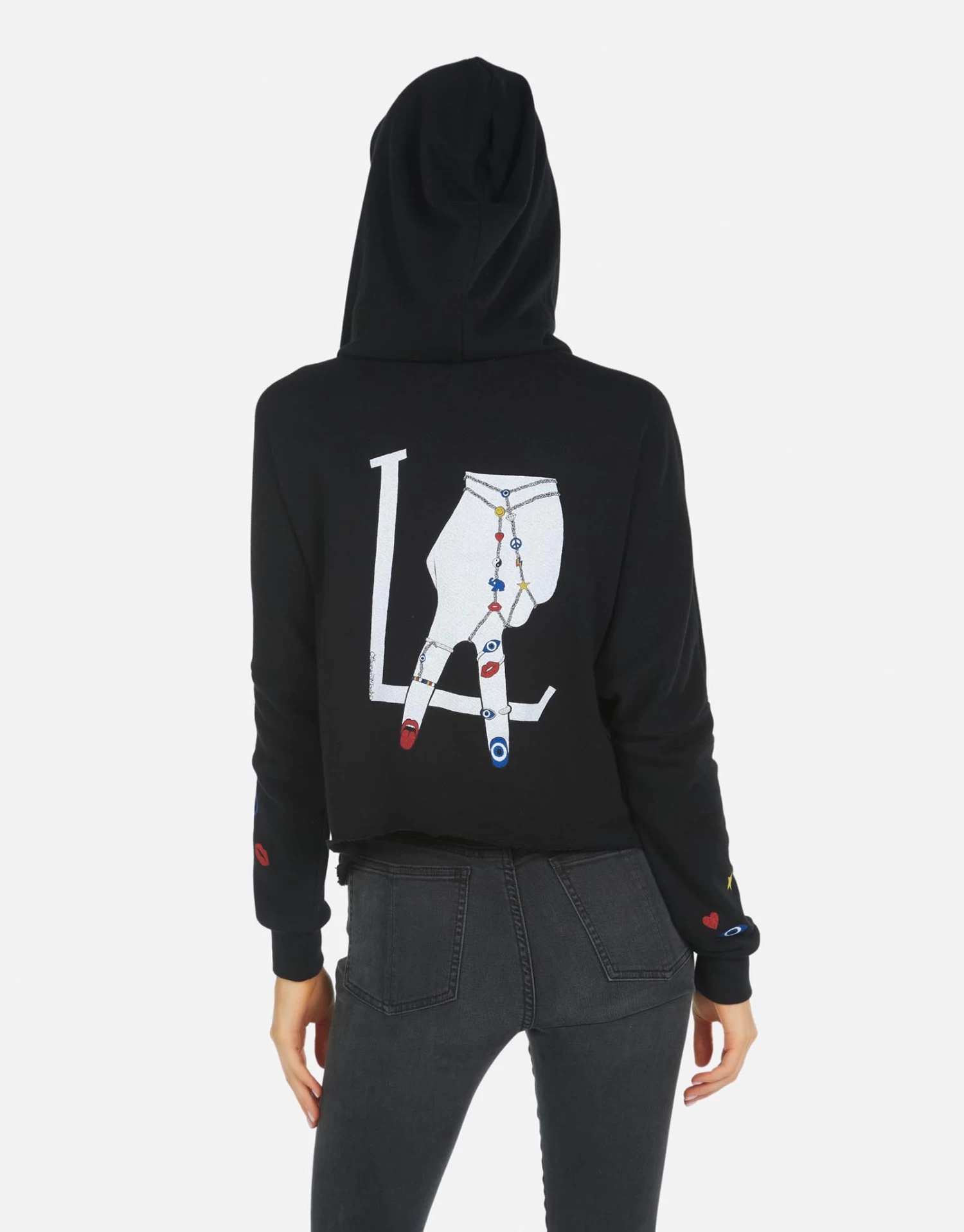 LA Hand Elements Printed on Ultra Soft Lightweight Hoodie in Black by Lauren Moshi.