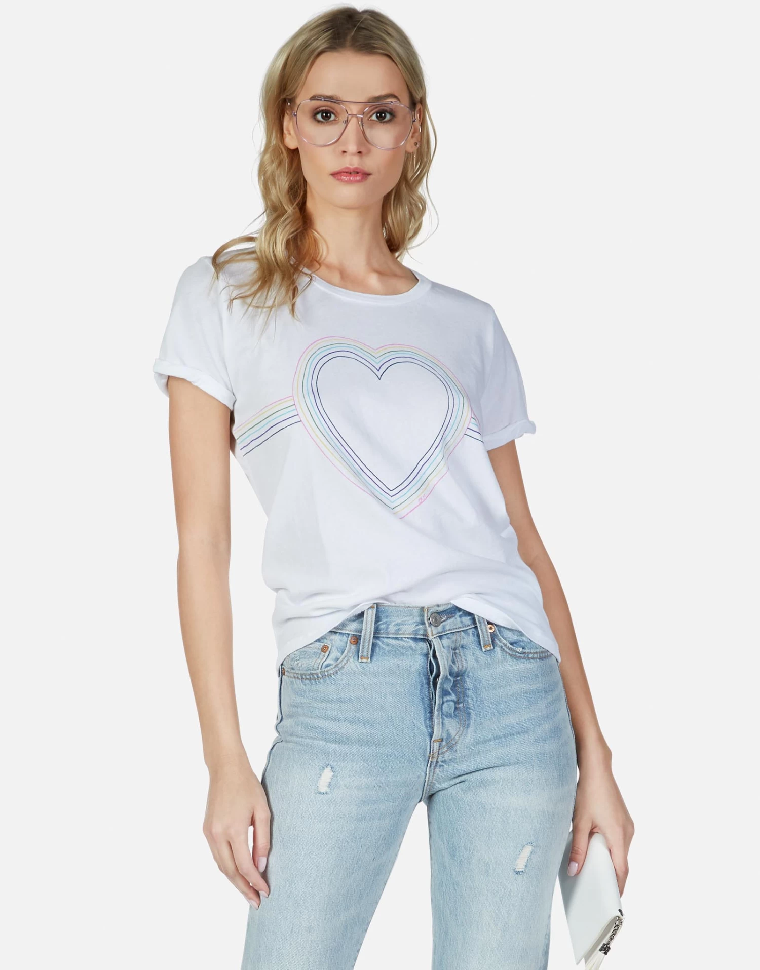 Rainbow Heart Outline Printed on Ultra Soft Lightweight Vintage Tee by Lauren Moshi.