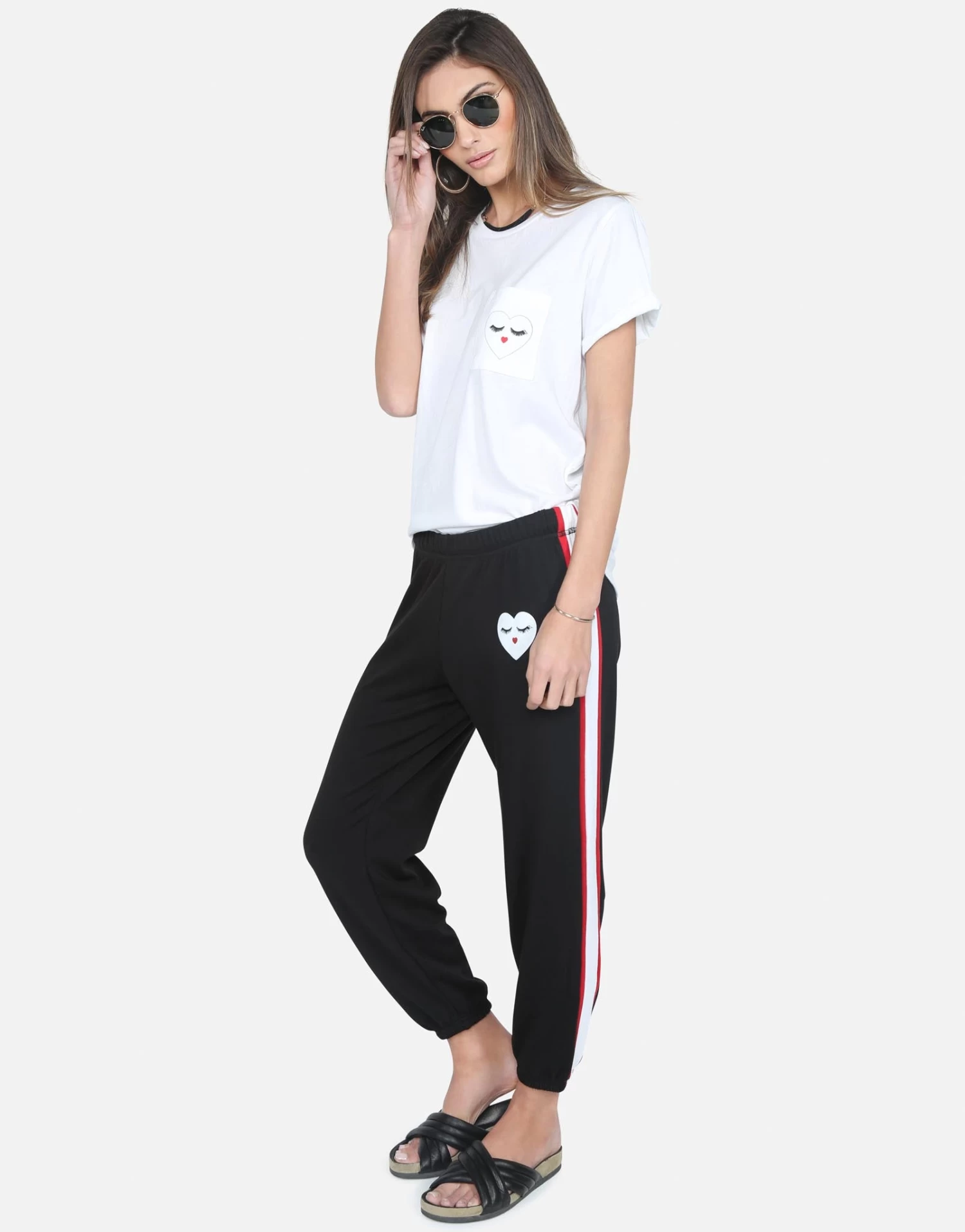 Glam Heart Face Printed on Ultra Soft Lightweight Tee in White by Lauren Moshi.