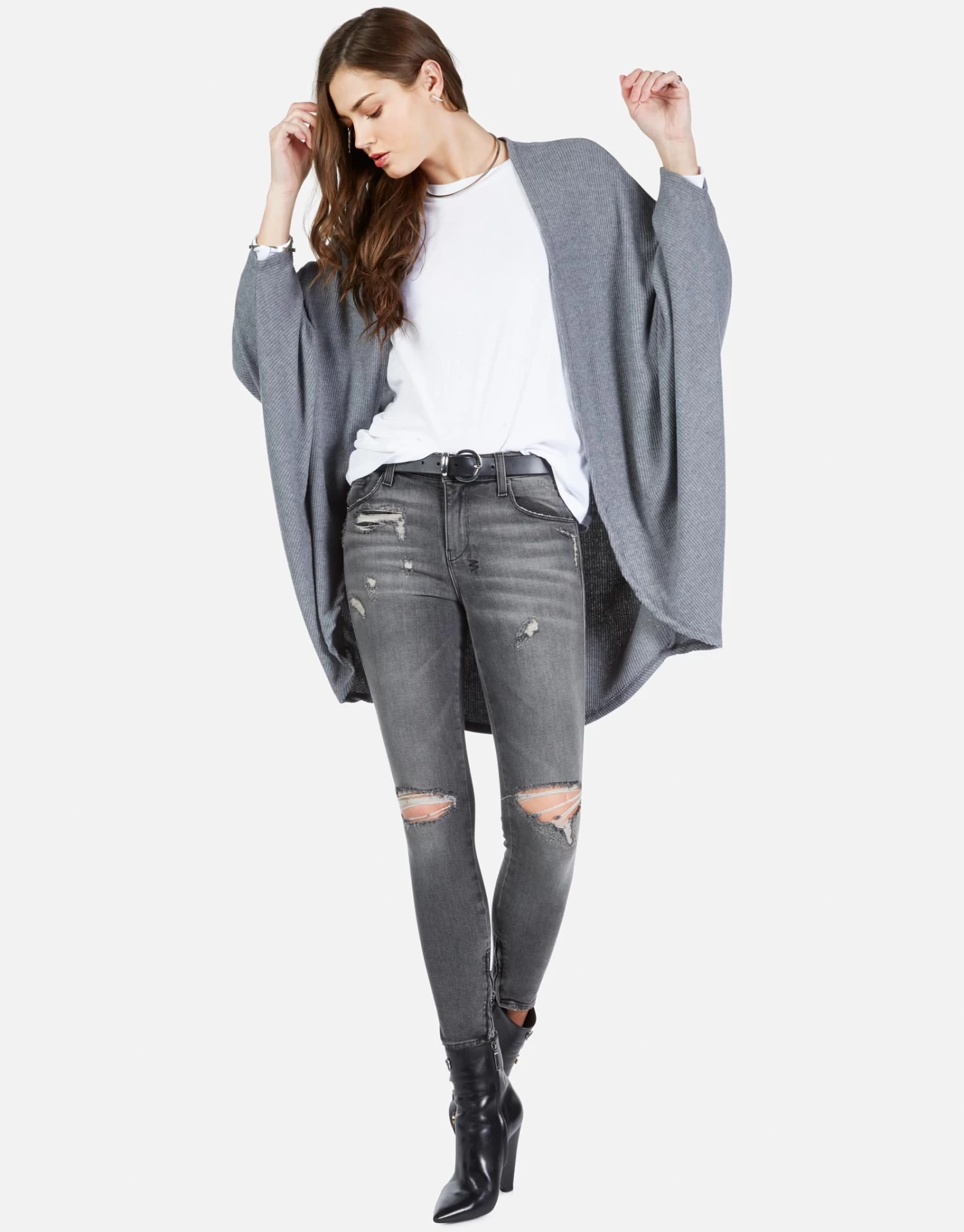 Cosmic Glam Eyes Printed on Ultra Soft Lightweight Cardigan Wrap in Heather Grey by Lauren Moshi.