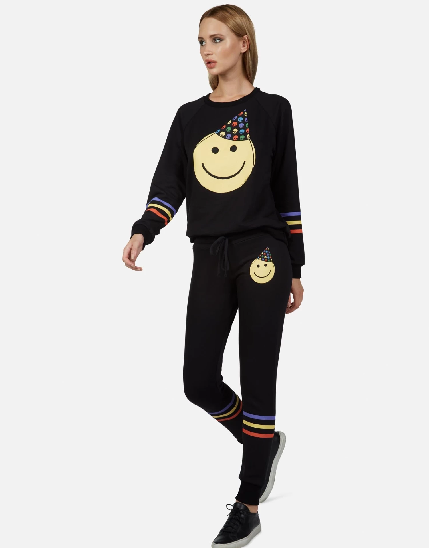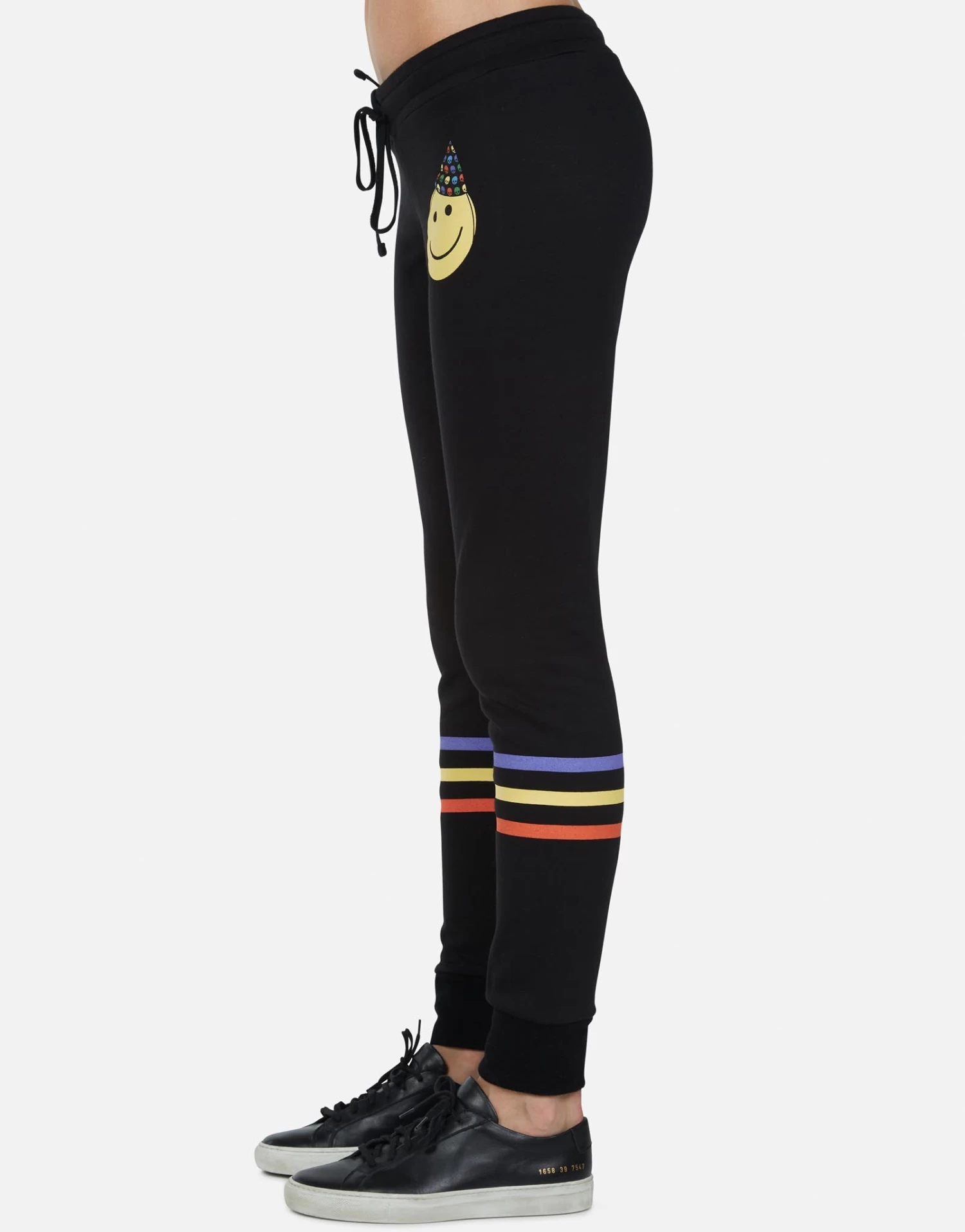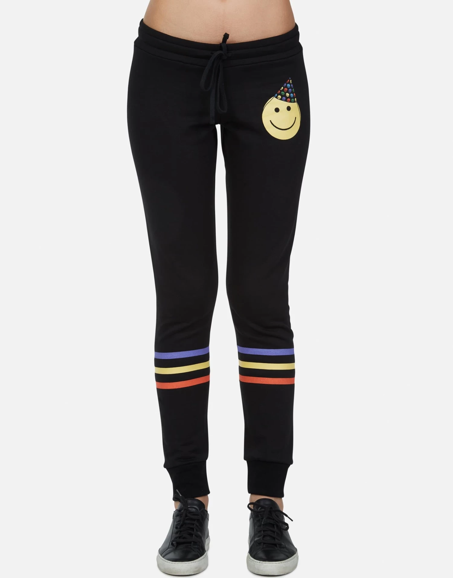 Party Hat Printed on Ultra Soft Lightweight Sweatpant in Black by Lauren Moshi.