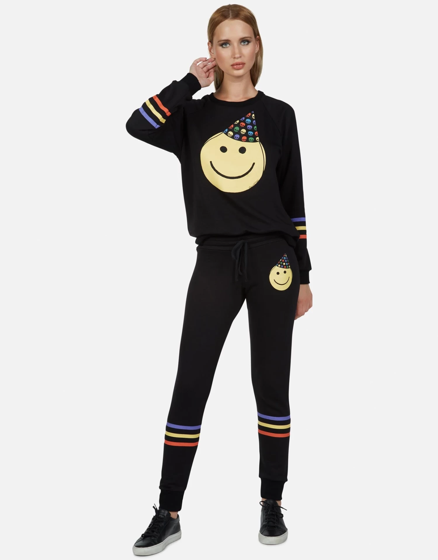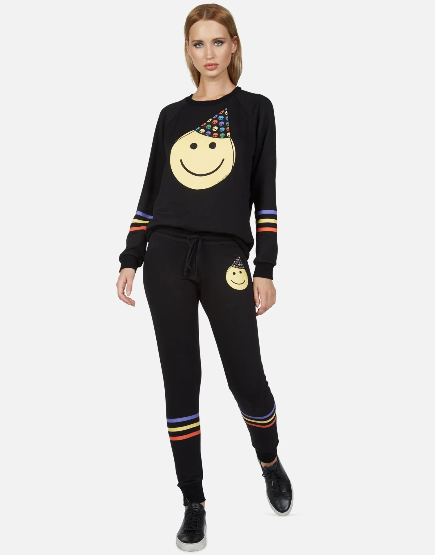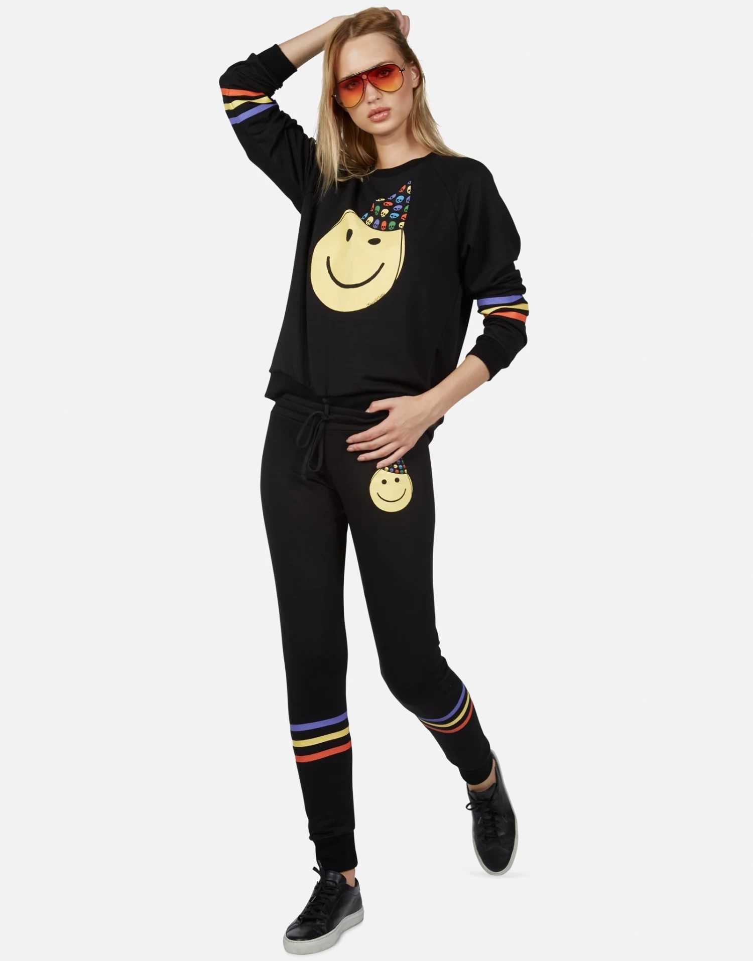 Party Hat Printed on Ultra Soft Lightweight Sweatpant in Black by Lauren Moshi.