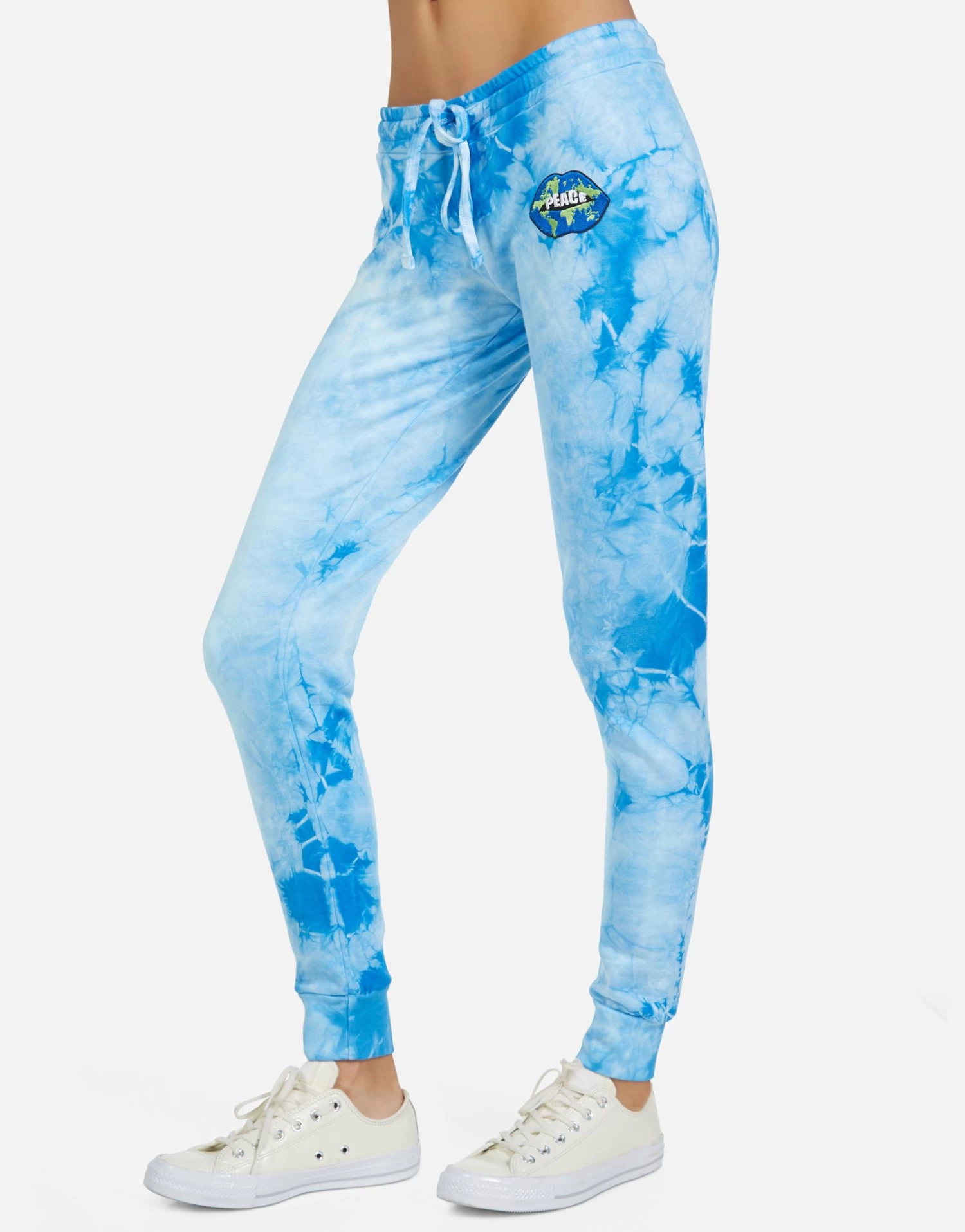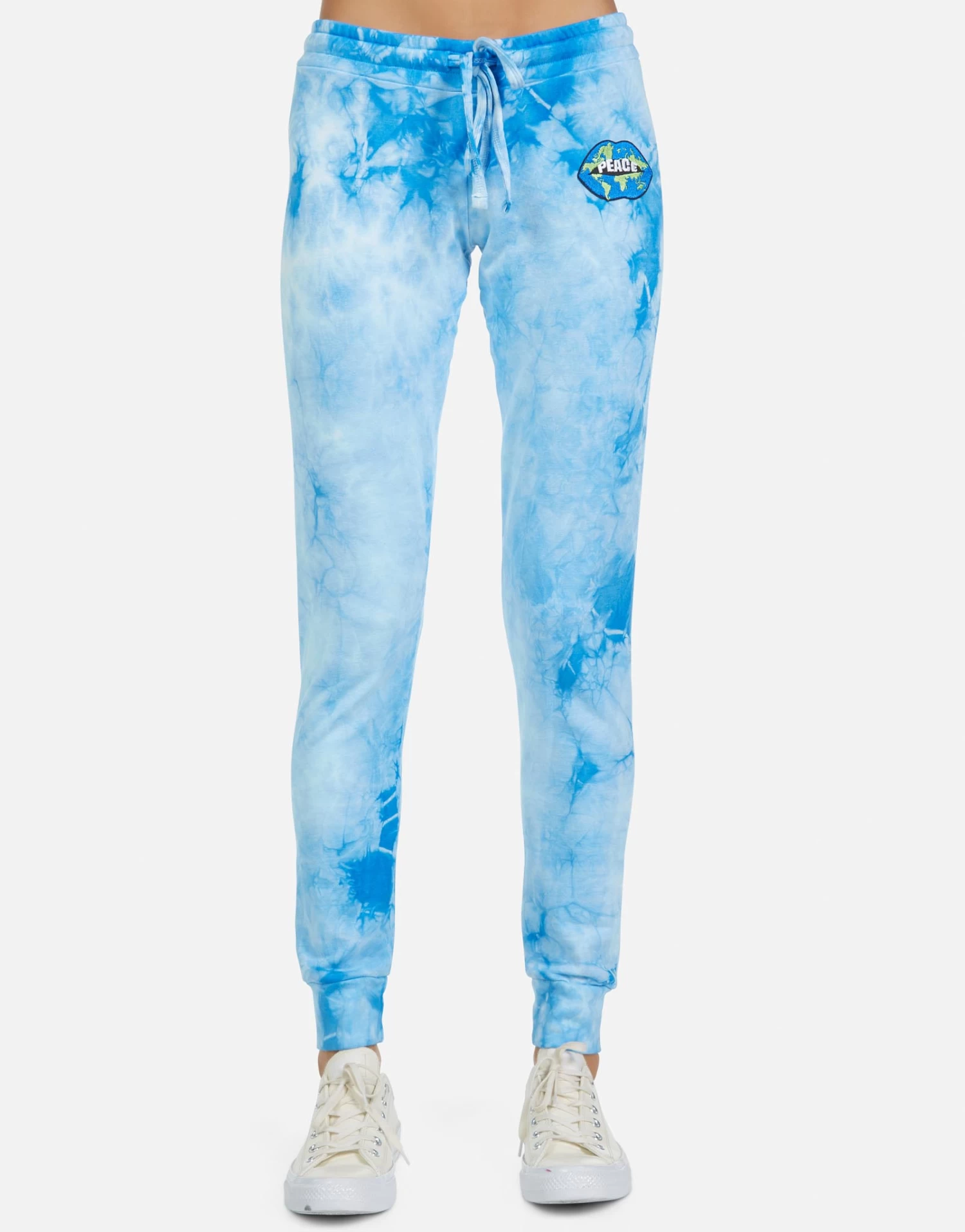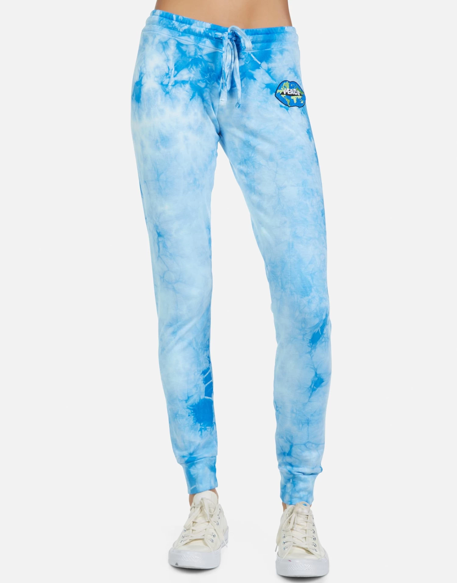 World Peace Lips Printed on Ultra Soft Lightweight Sweatpant in Blue Clouds by Lauren Moshi.