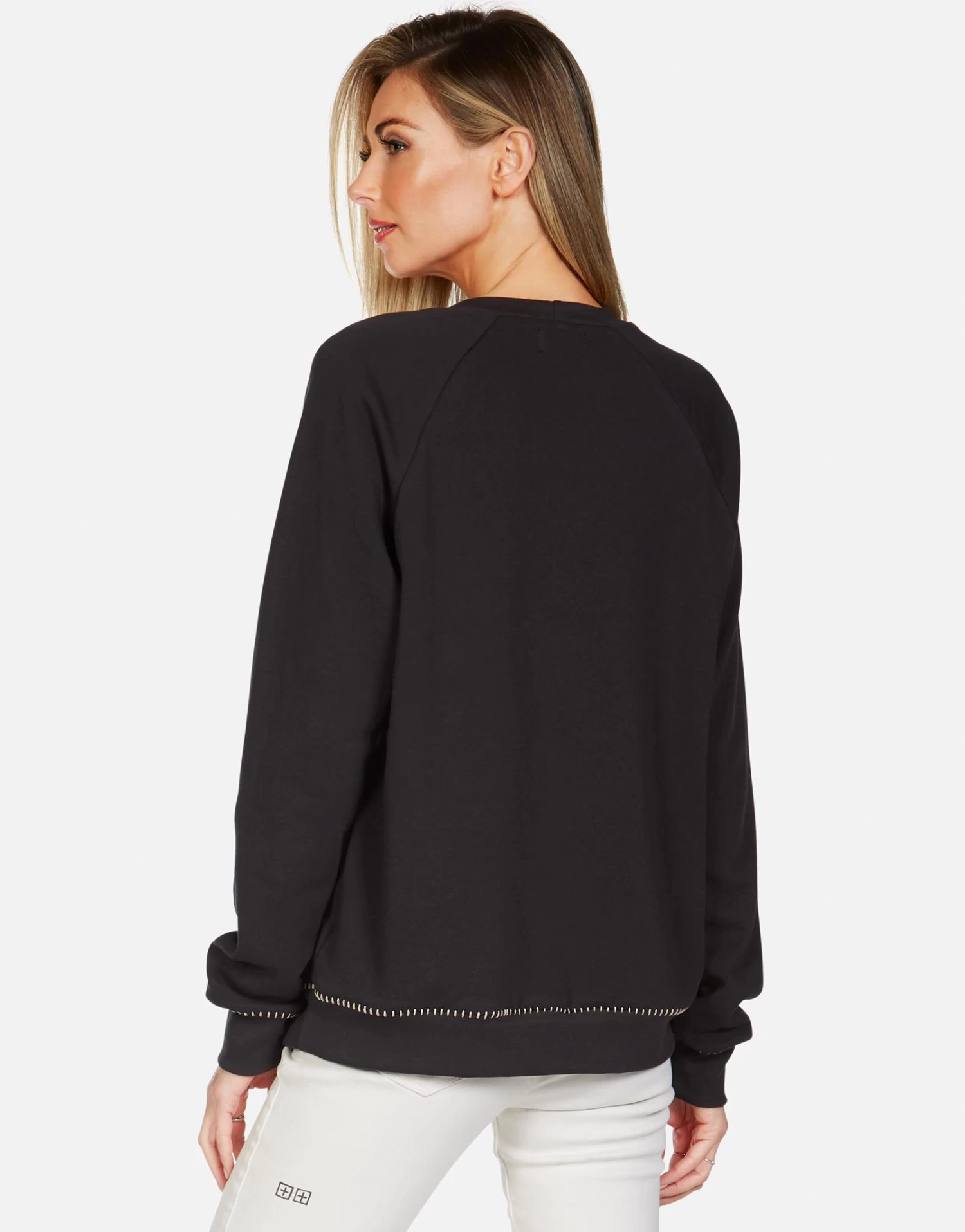 Loveable Heart Teddy Printed on Ultra Soft Lightweight Raglan Pullover in Onyx by Lauren Moshi.
