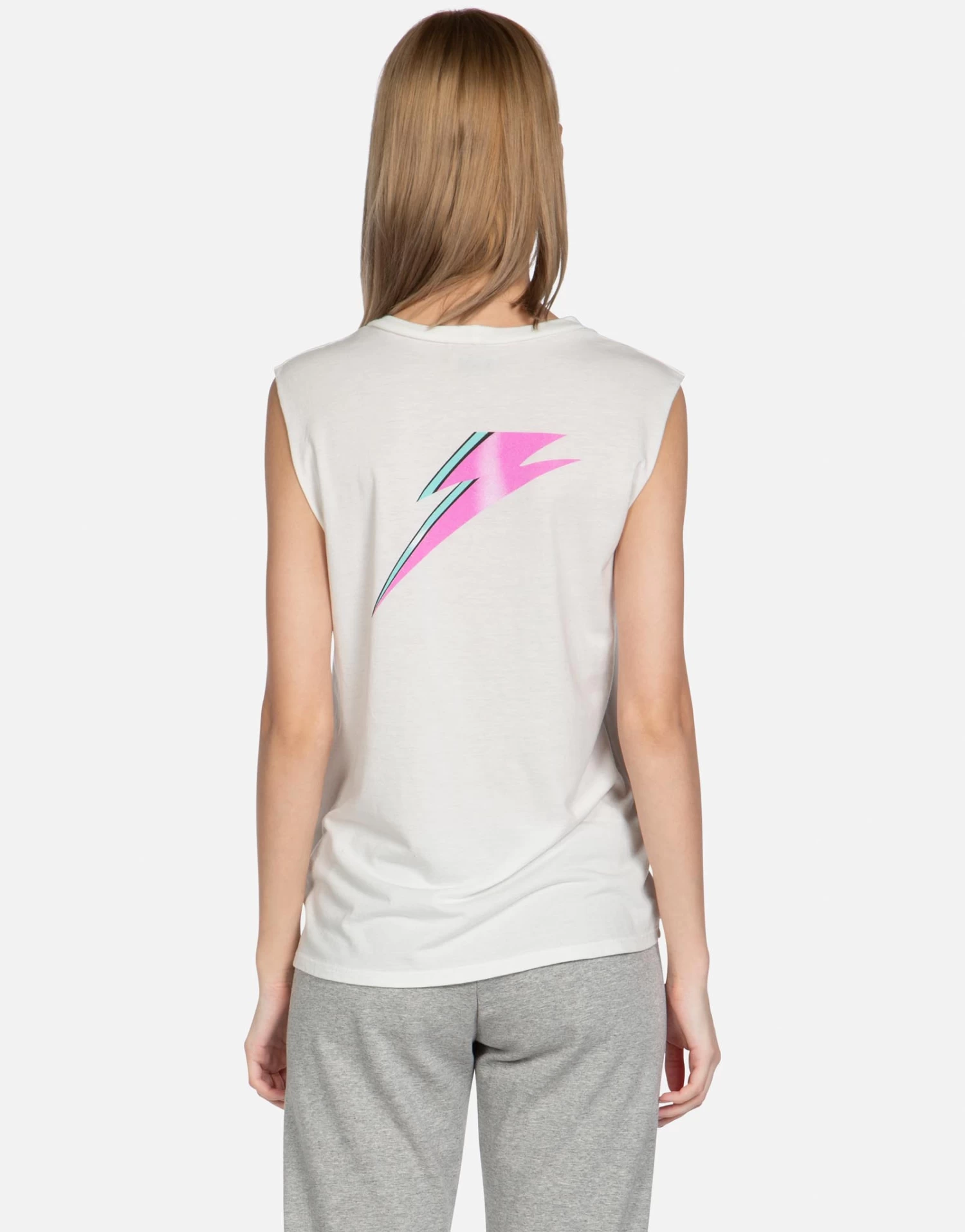 Bowie Stardust Printed on Ultra Soft Lightweight Tank in Milk & Onyx by Lauren Moshi.