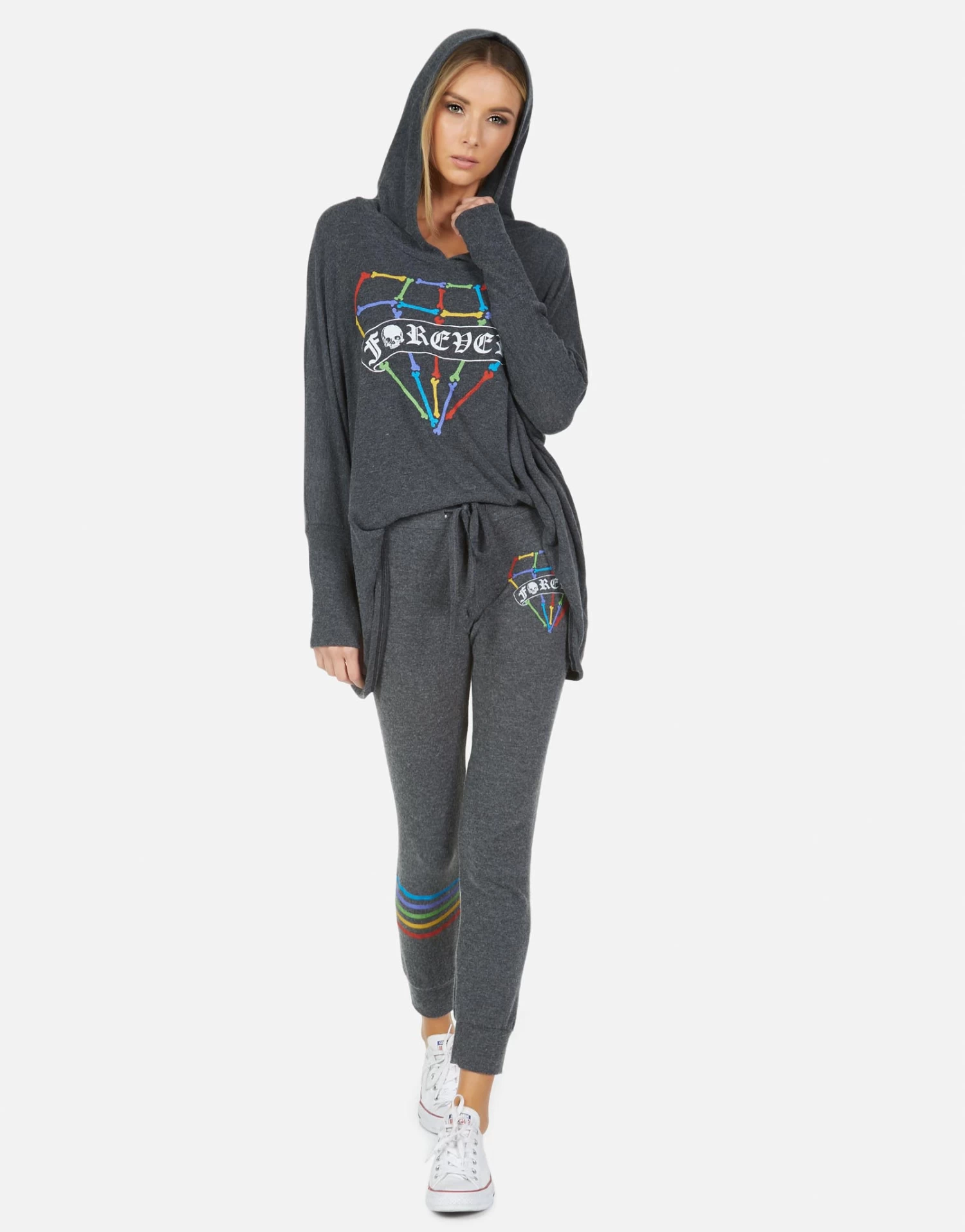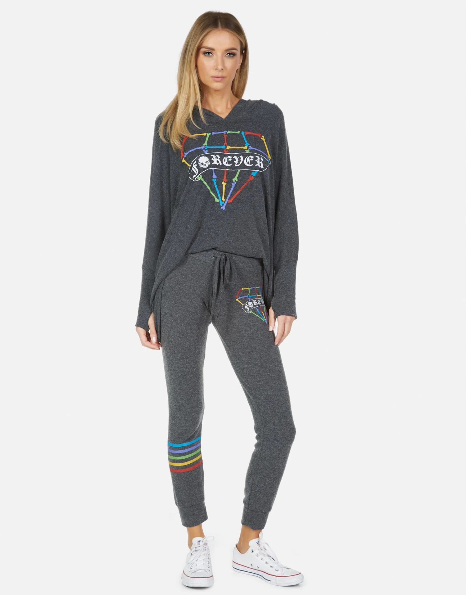 Bone Diamond Printed on Ultra Soft Lightweight Sweatpant in Heather Black by Lauren Moshi.