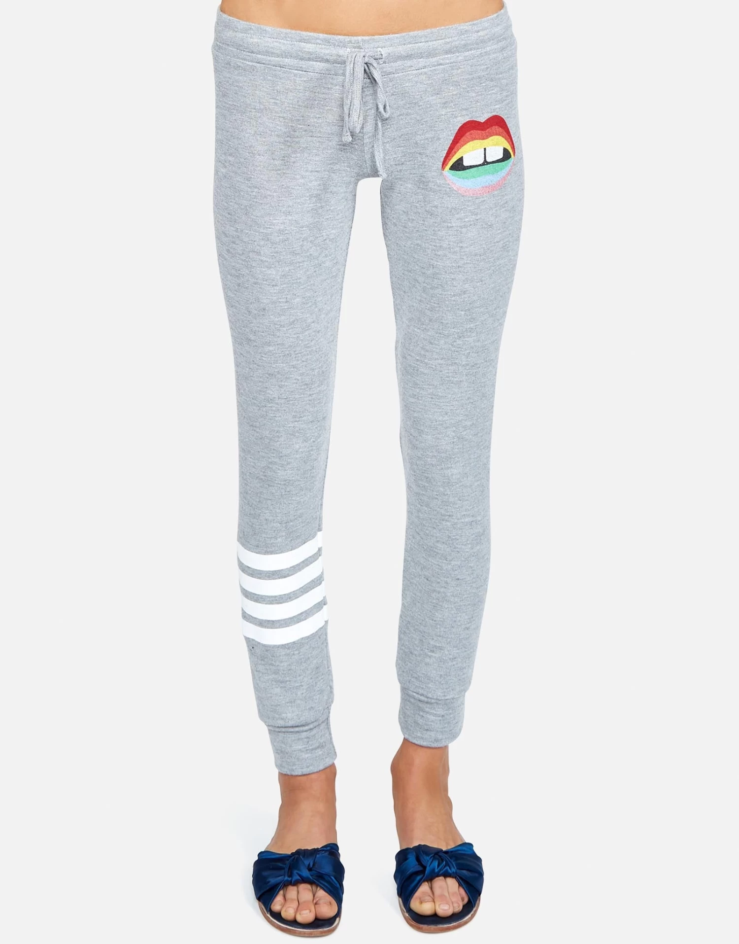 Rainbow Gap Mouth Printed on Super Soft Lightweight Sweatpant in Heather Grey by Lauren Moshi.
