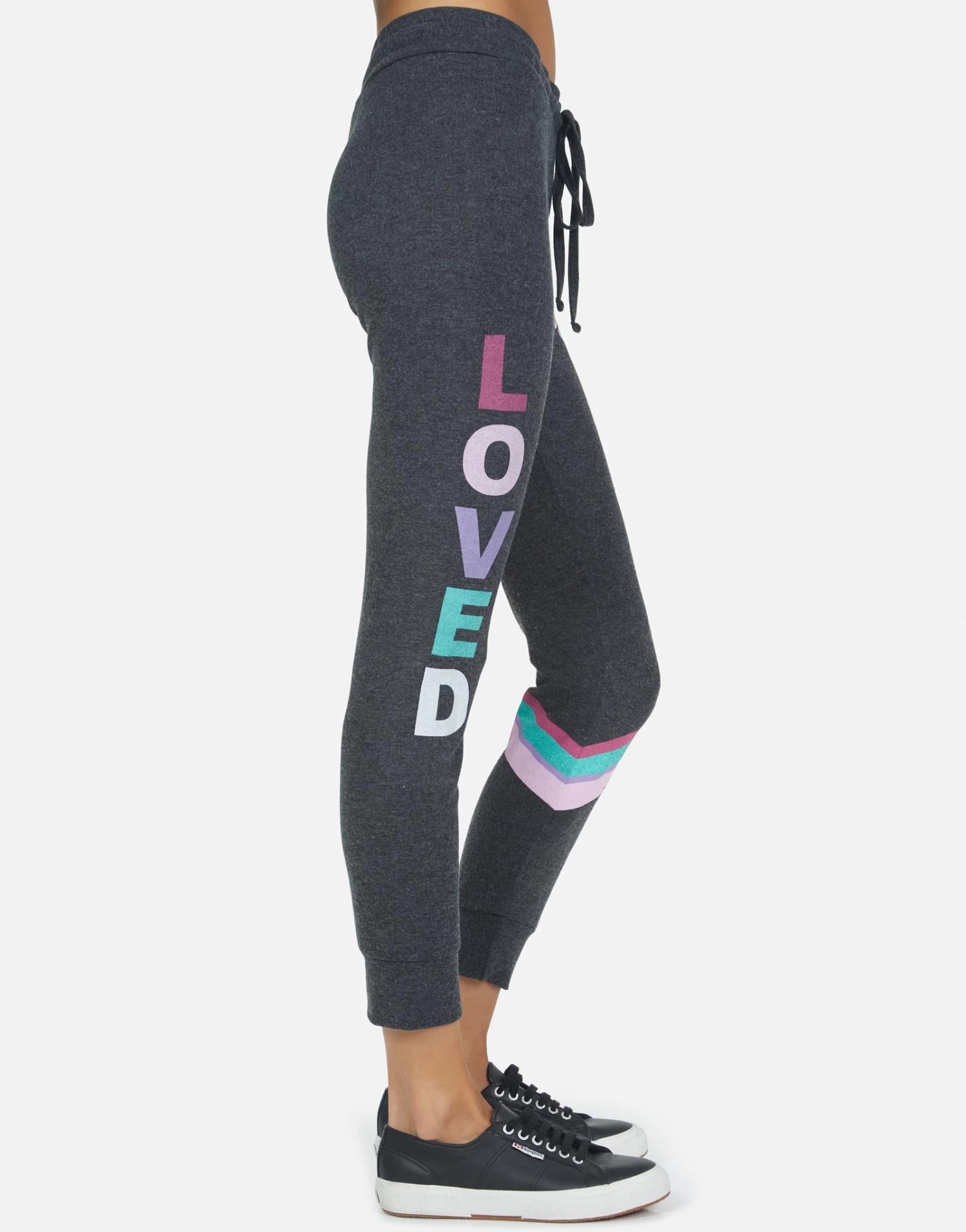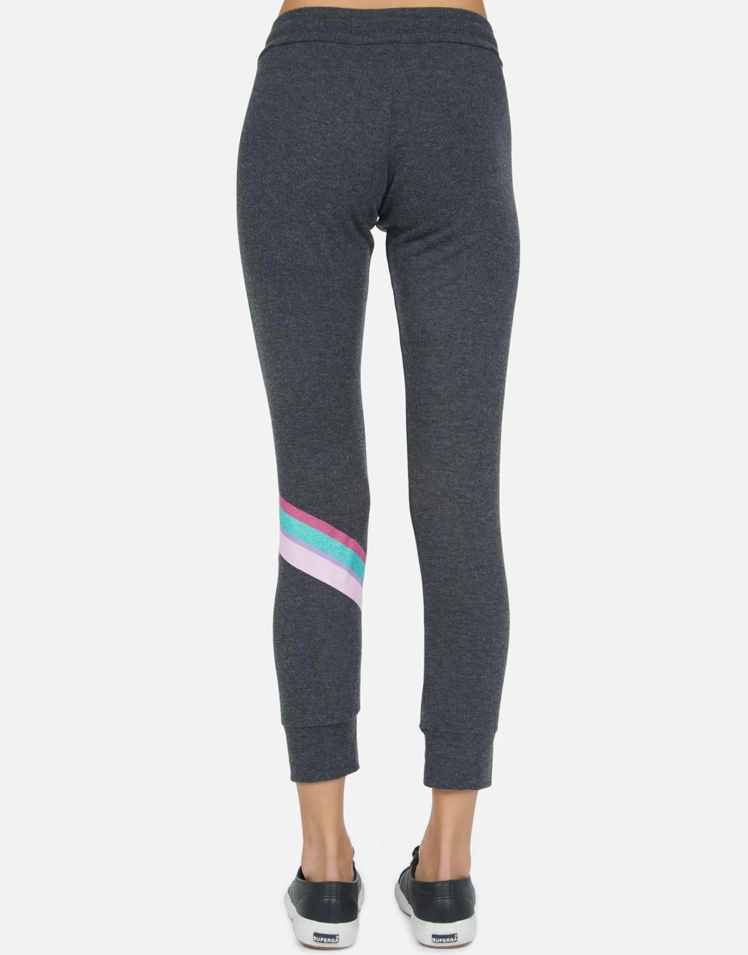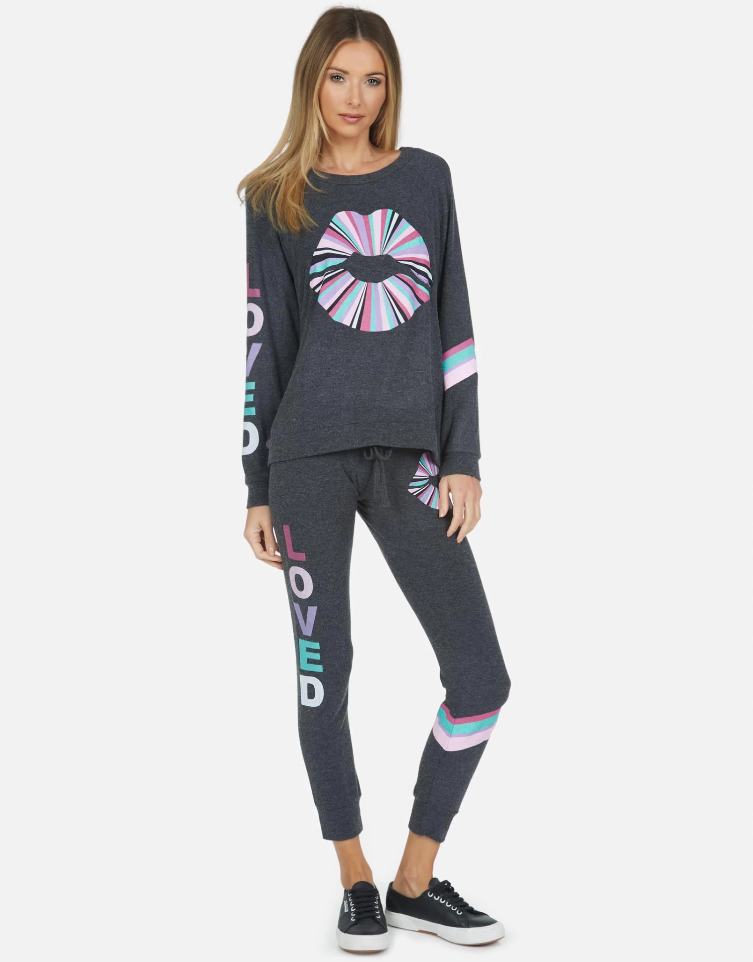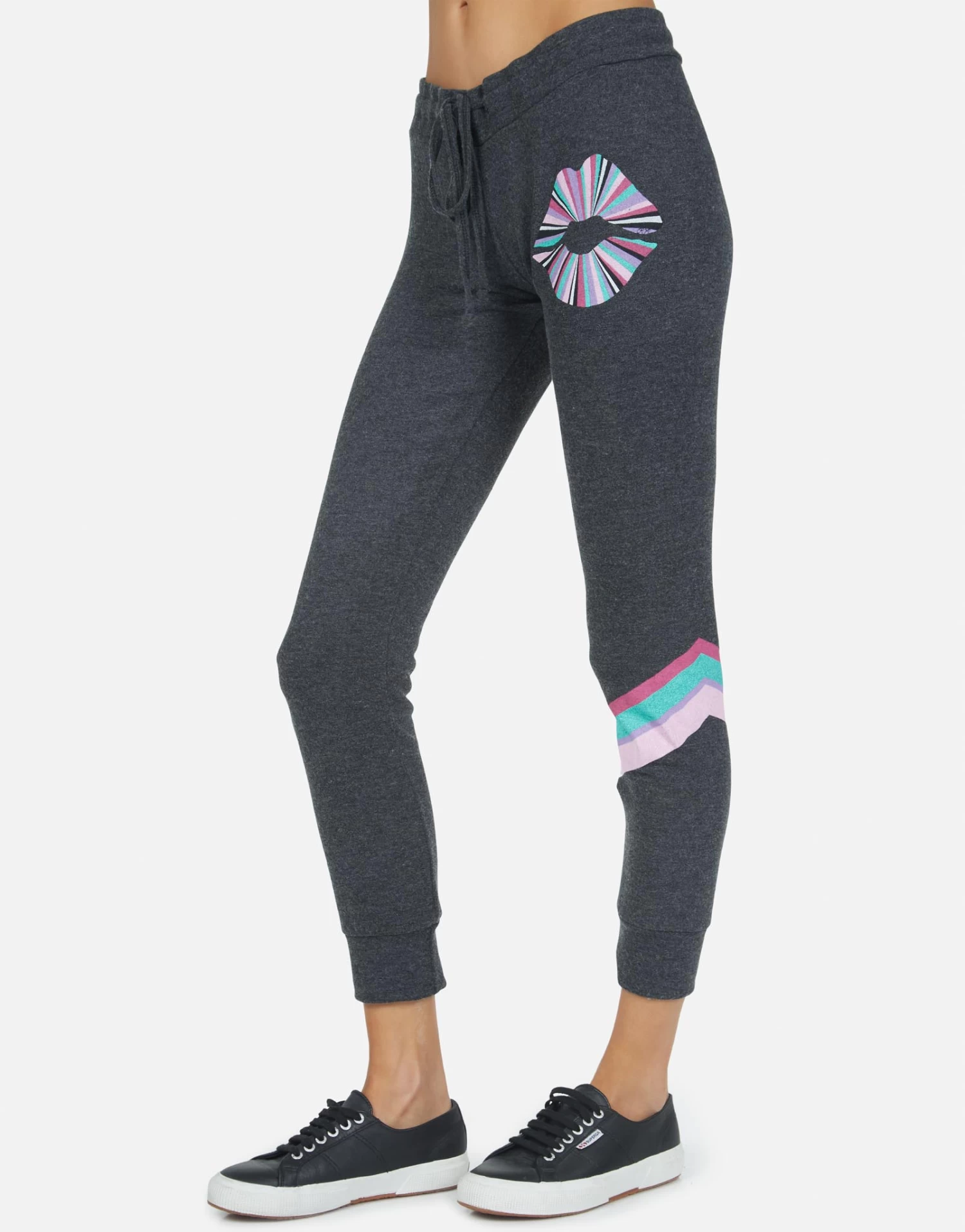 Rainbow Ray Lip Printed on Ultra Soft Lightweight Sweatpant in Heather Black by Lauren Moshi.