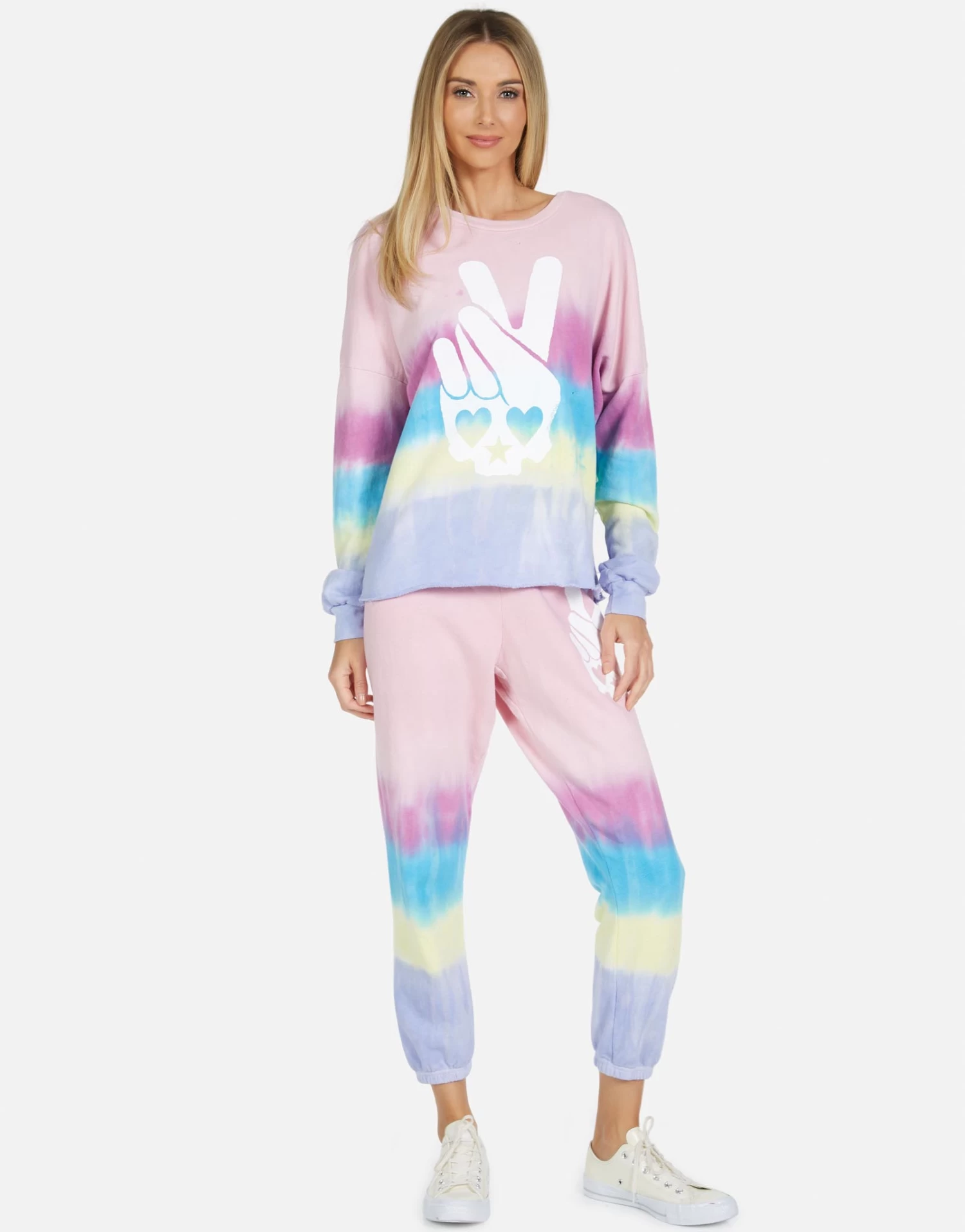 Skull Peace on Ultra Soft Lightweight Pullover in Ocean Sunrise by Lauren Moshi.