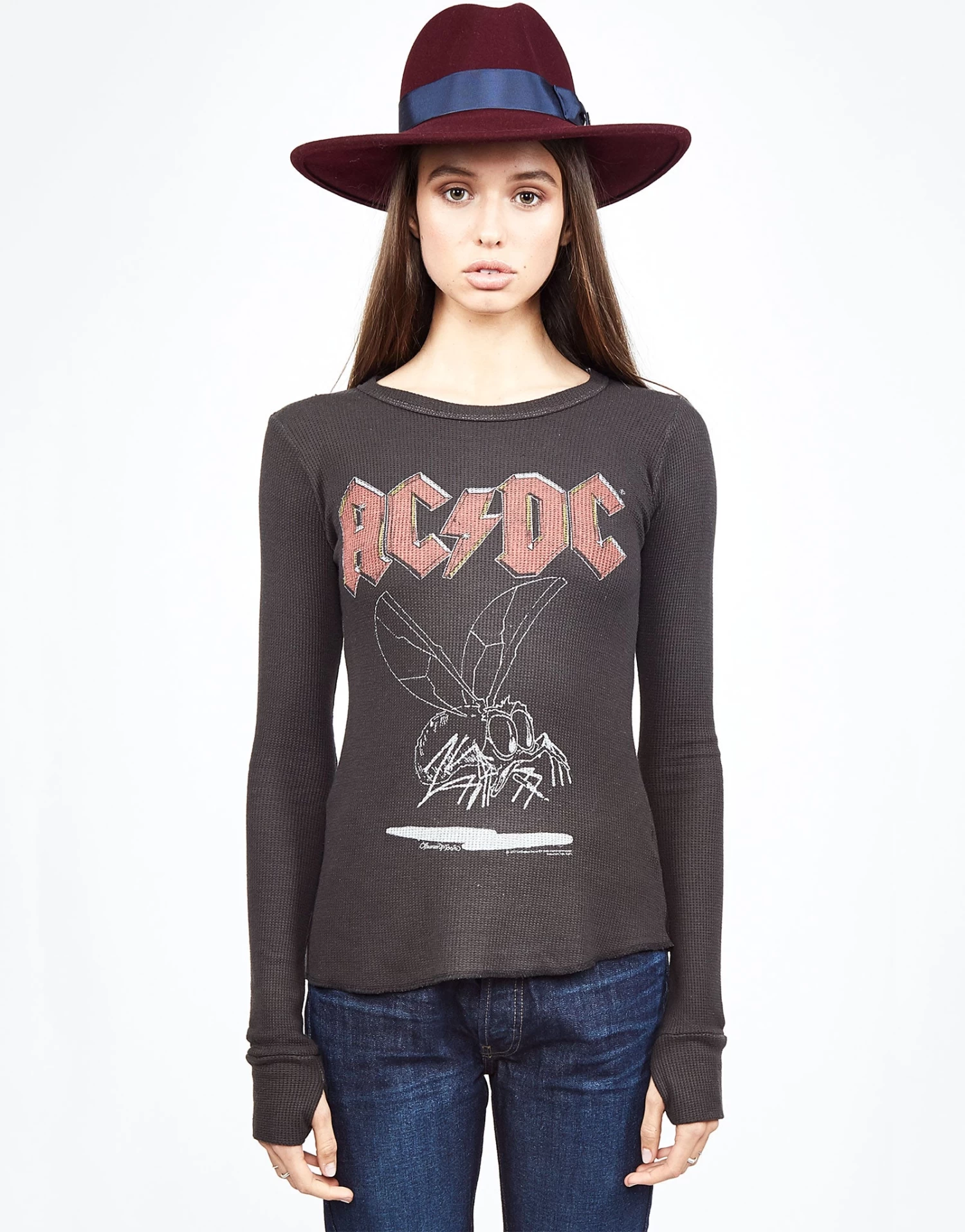 AC/DC Bug w/ Tour Dates Printed on Super Soft Fitted Long Sleeve Thermal w/ Thumbholes in Black by Lauren Moshi.