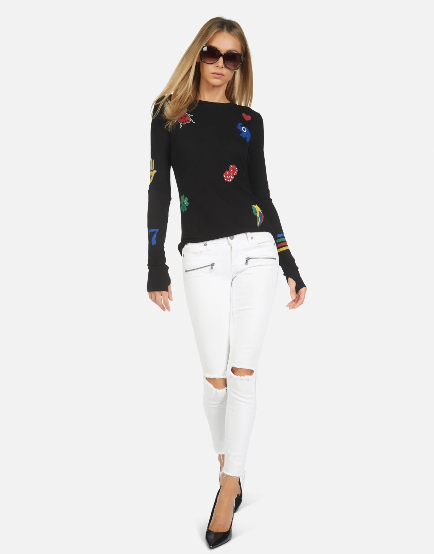 Lucky Elements Printed on Ultra Soft Lightweight Thermal in Milk & Black by Lauren Moshi.