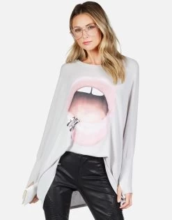 WEB EXCLUSIVE | Pink Lip Piercing Printed on Ultra Soft Lightweight Pullover in Cloud by Lauren Moshi.