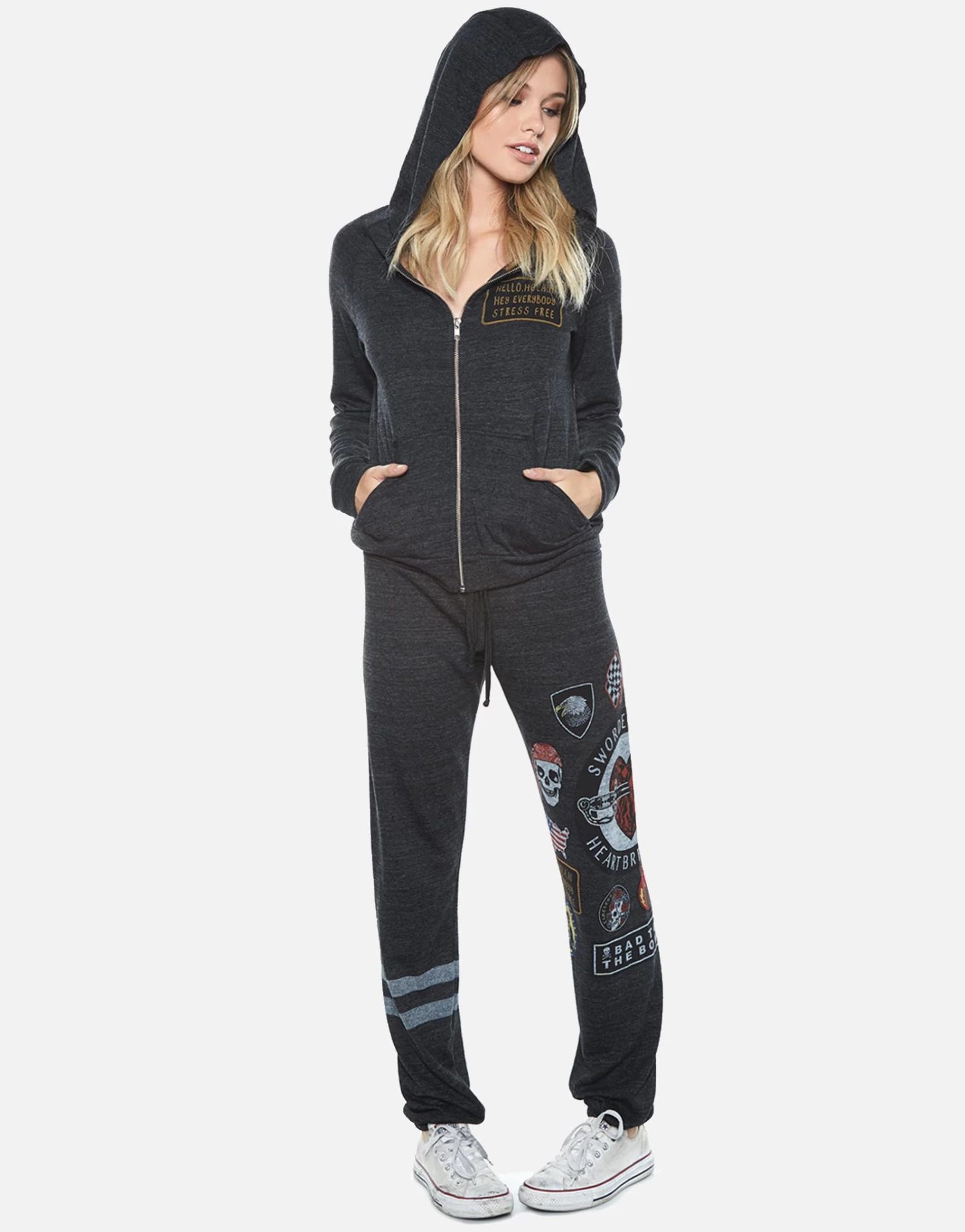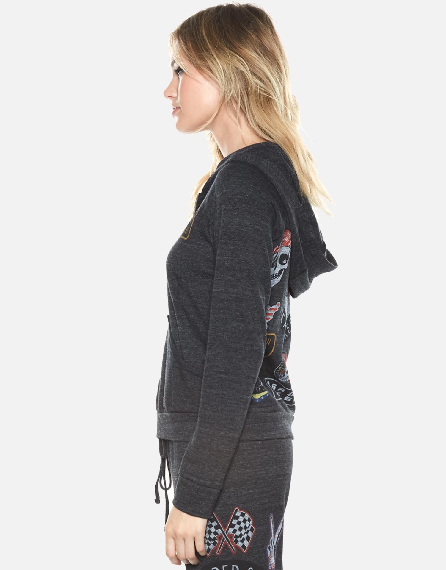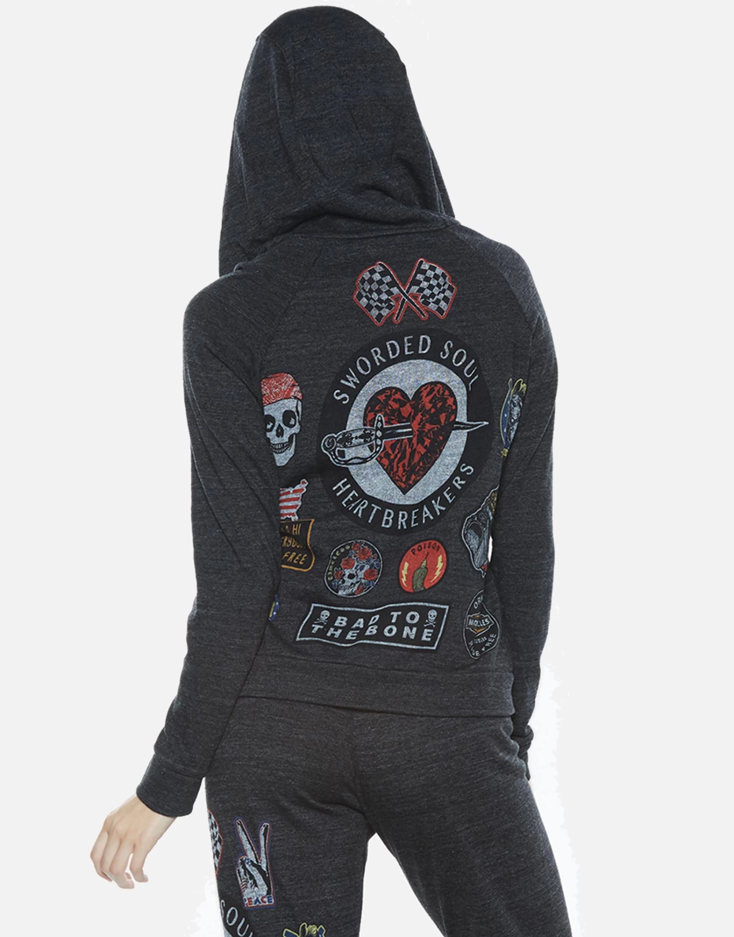 Heartbreaker Printed on Ultra Soft Lightweight Hoodie in Heather Black by Lauren Moshi.