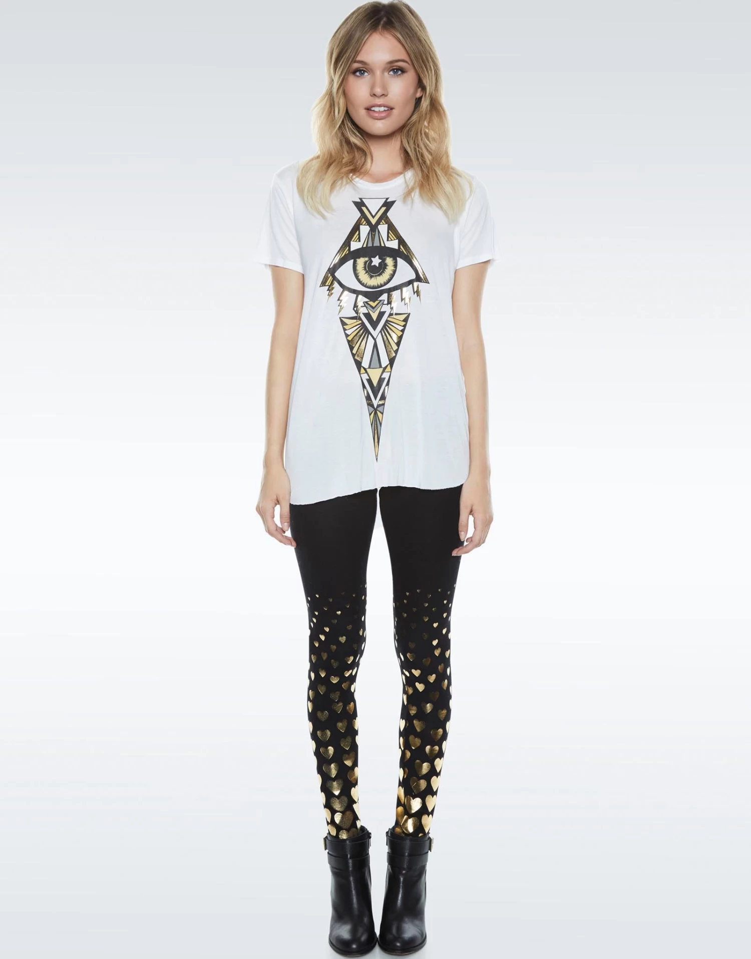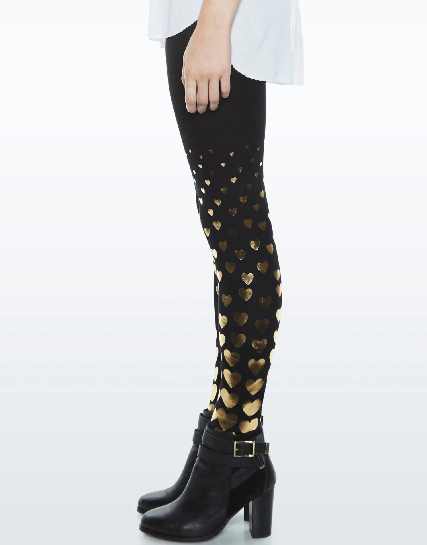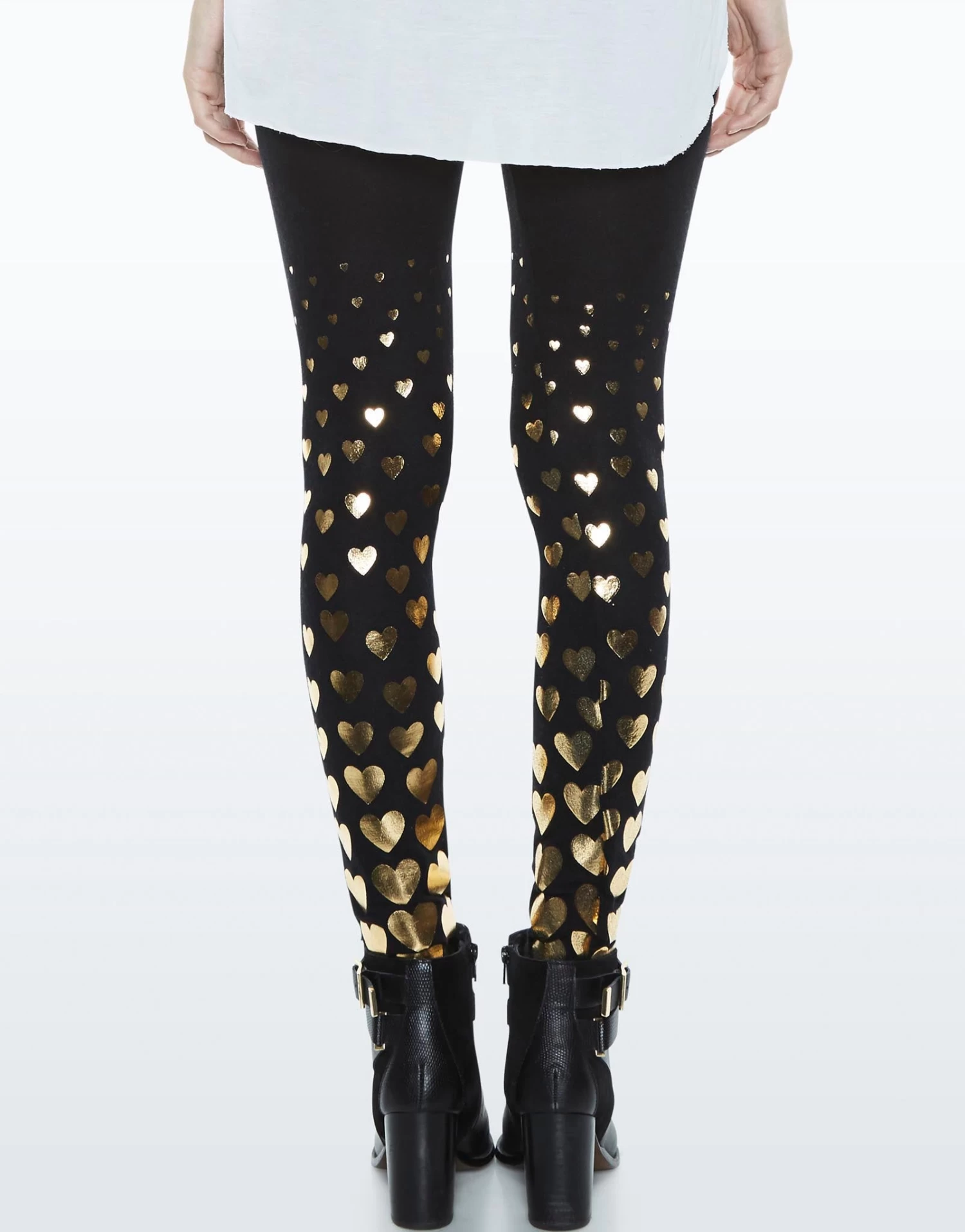 Shae All Over Gold Foil Hearts Legging in Jet Black by Lauren Moshi.