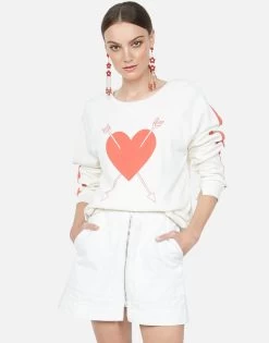 Red Arrow Heart Printed on Super Soft Long Sleeve Pullover in Faded White/Tomato by Lauren Moshi.