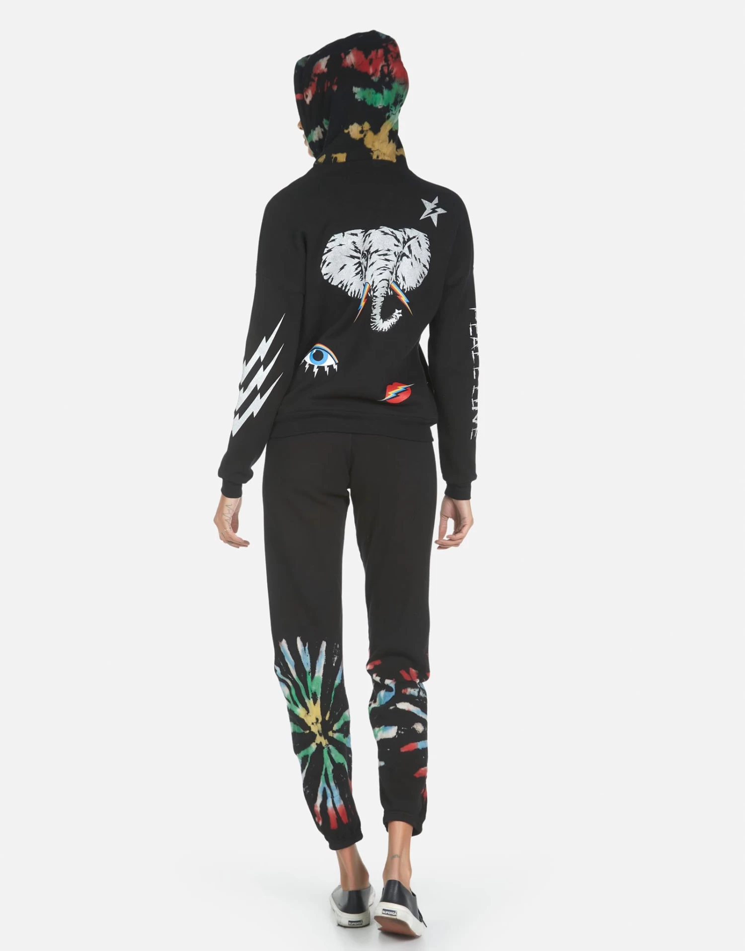 Elephant Bolt Elements Printed on Ultra Soft Lightweight Hoodie in Black/Primary Splash by Lauren Moshi.