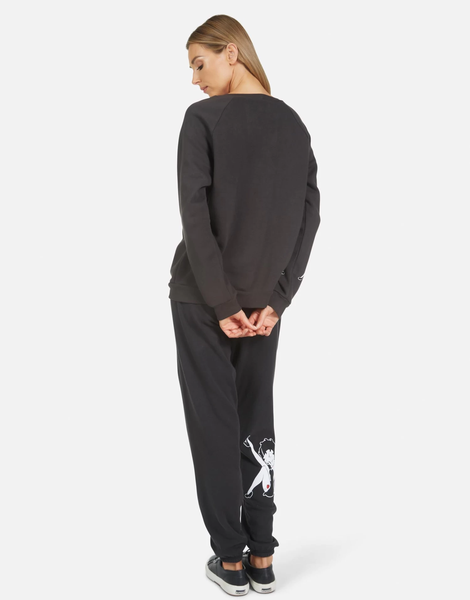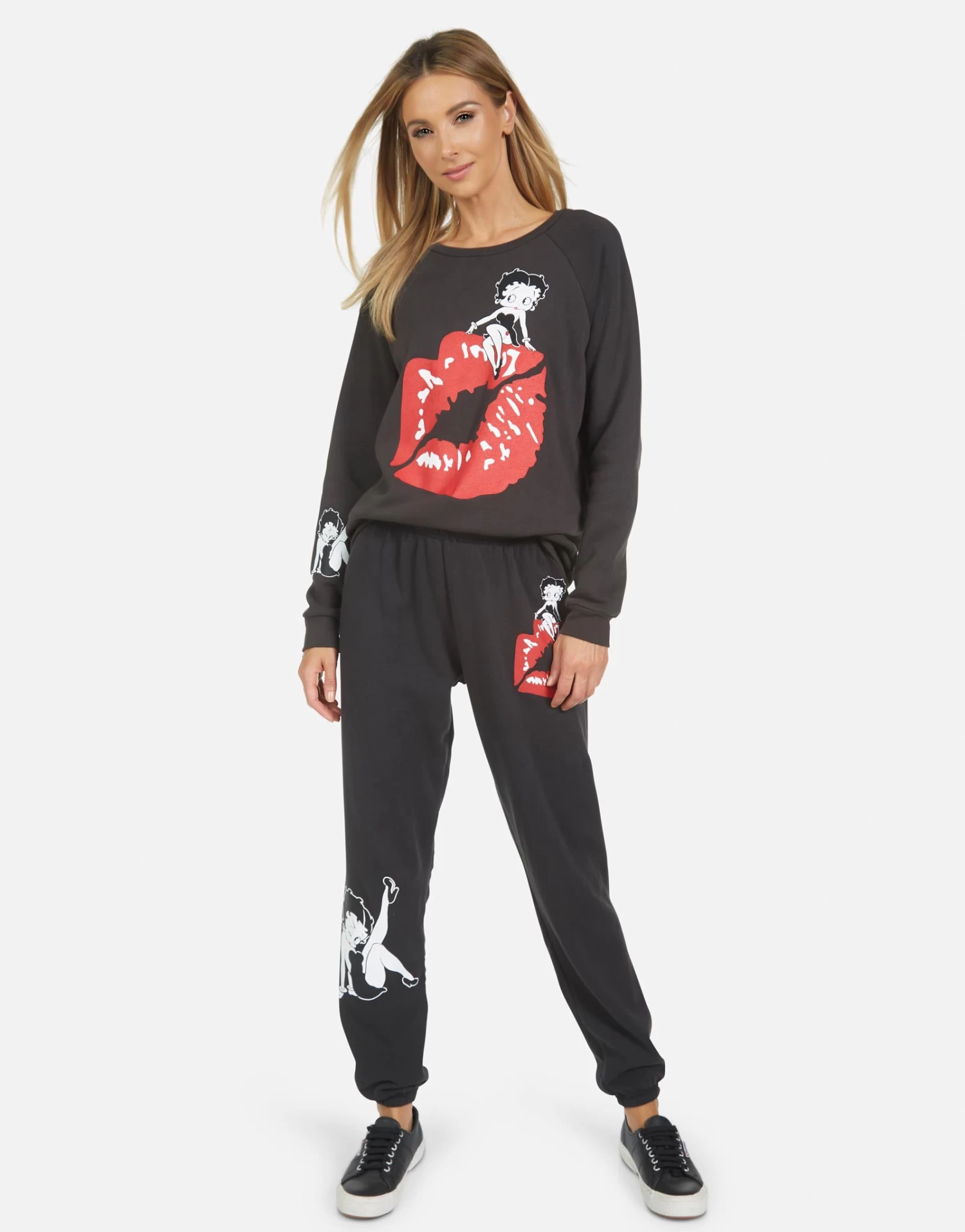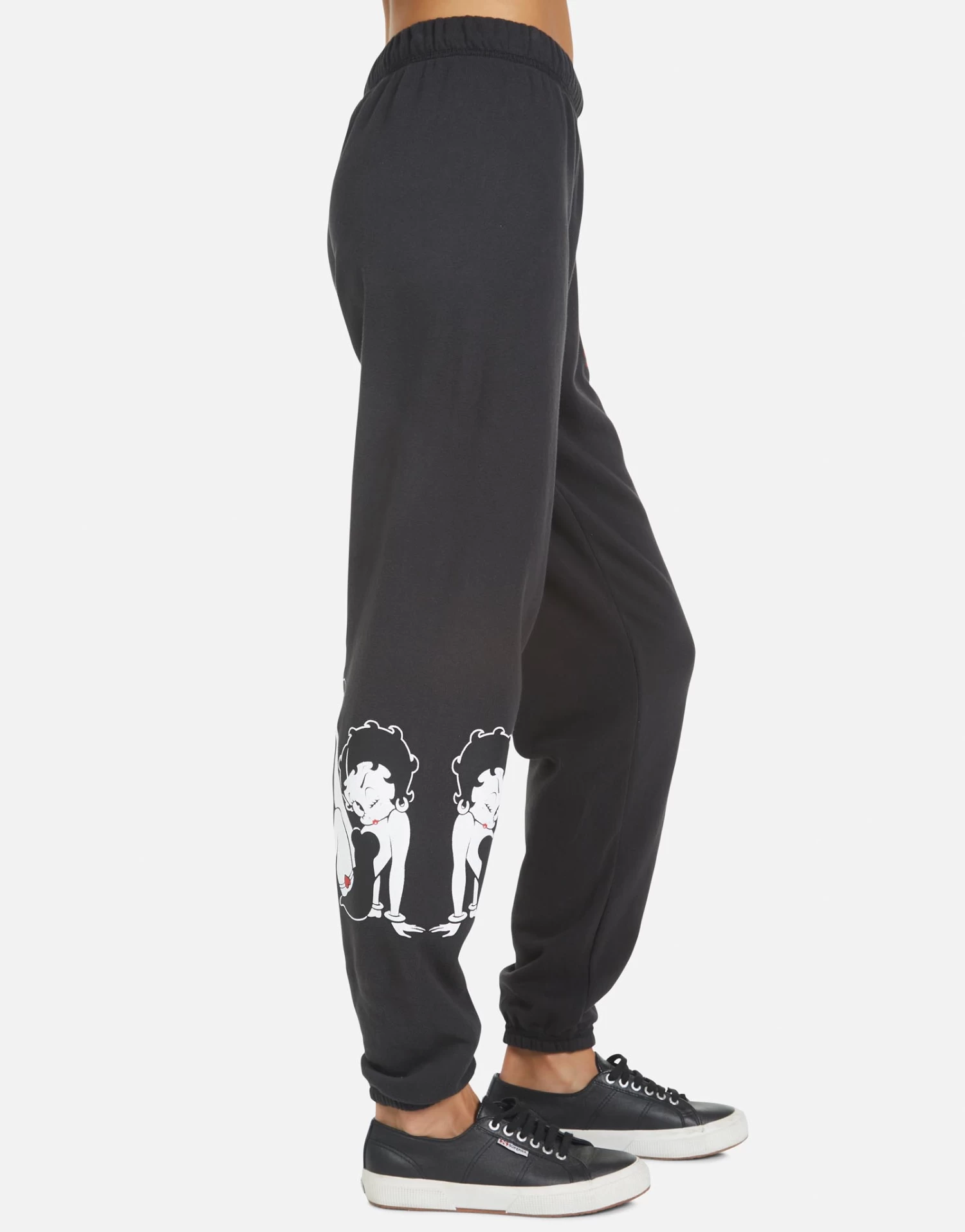 Betty Boop Printed on Ultra Soft Lightweight Sweatpant in Onyx by Lauren Moshi.