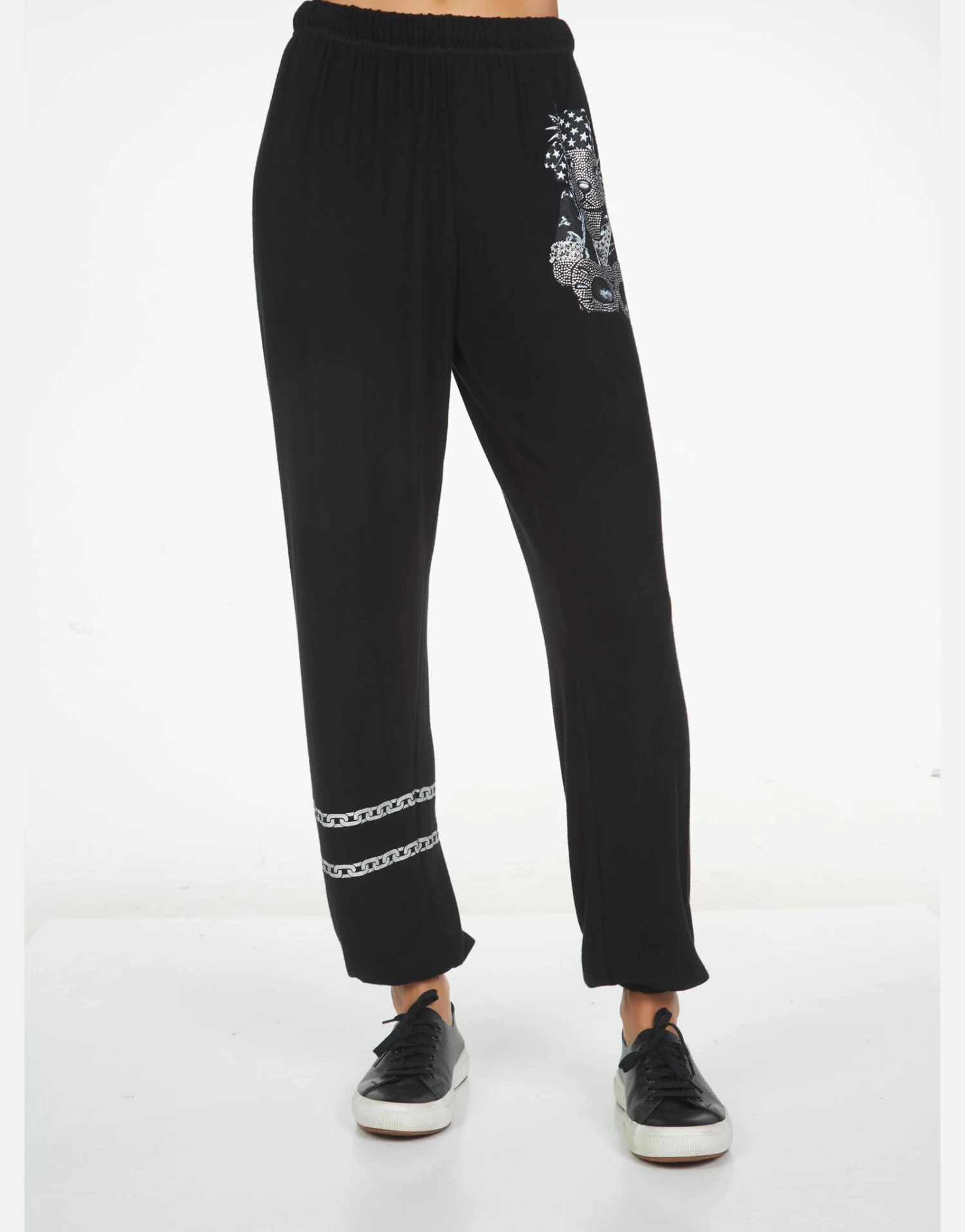 Rocker Teddy on Ultra Soft Lightweight Sweatpant in Black by Lauren Moshi.