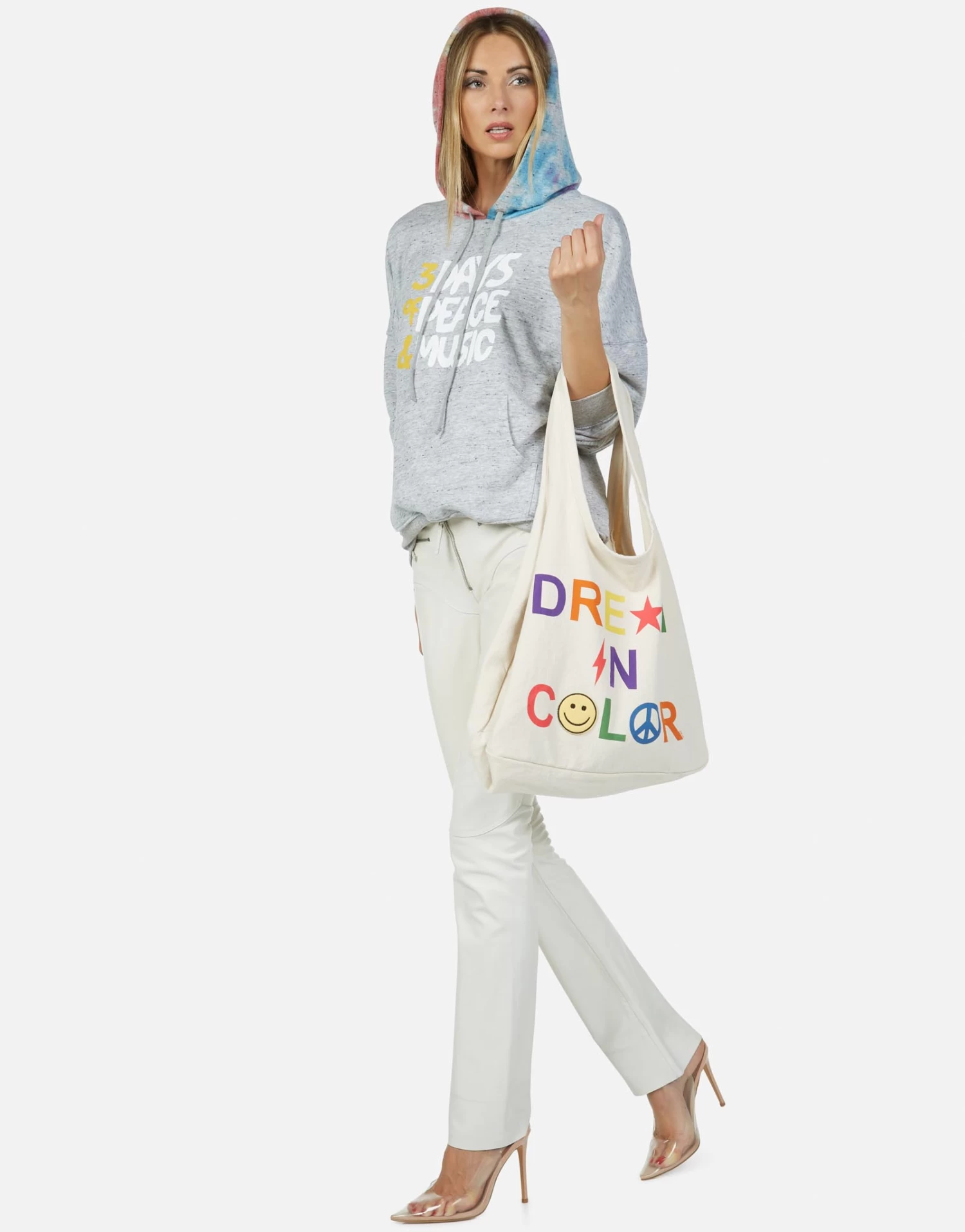 Dream in Color Printed on Canvas Tote Bag in Natural by Lauren Moshi.