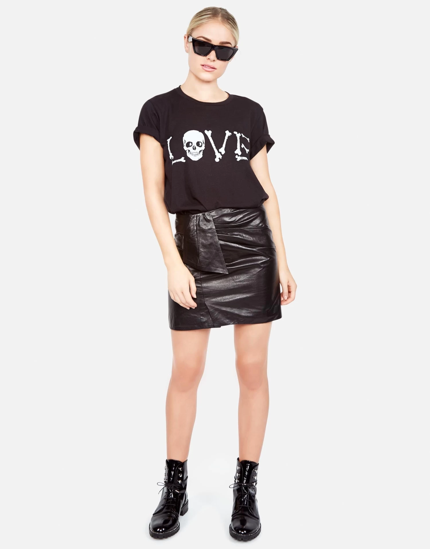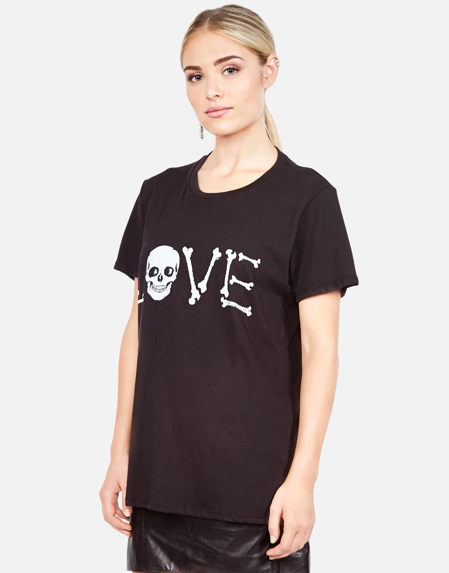 Skull & Love Bones Printed on Ultra Soft Lightweight Tee in Onyx by Lauren Moshi.
