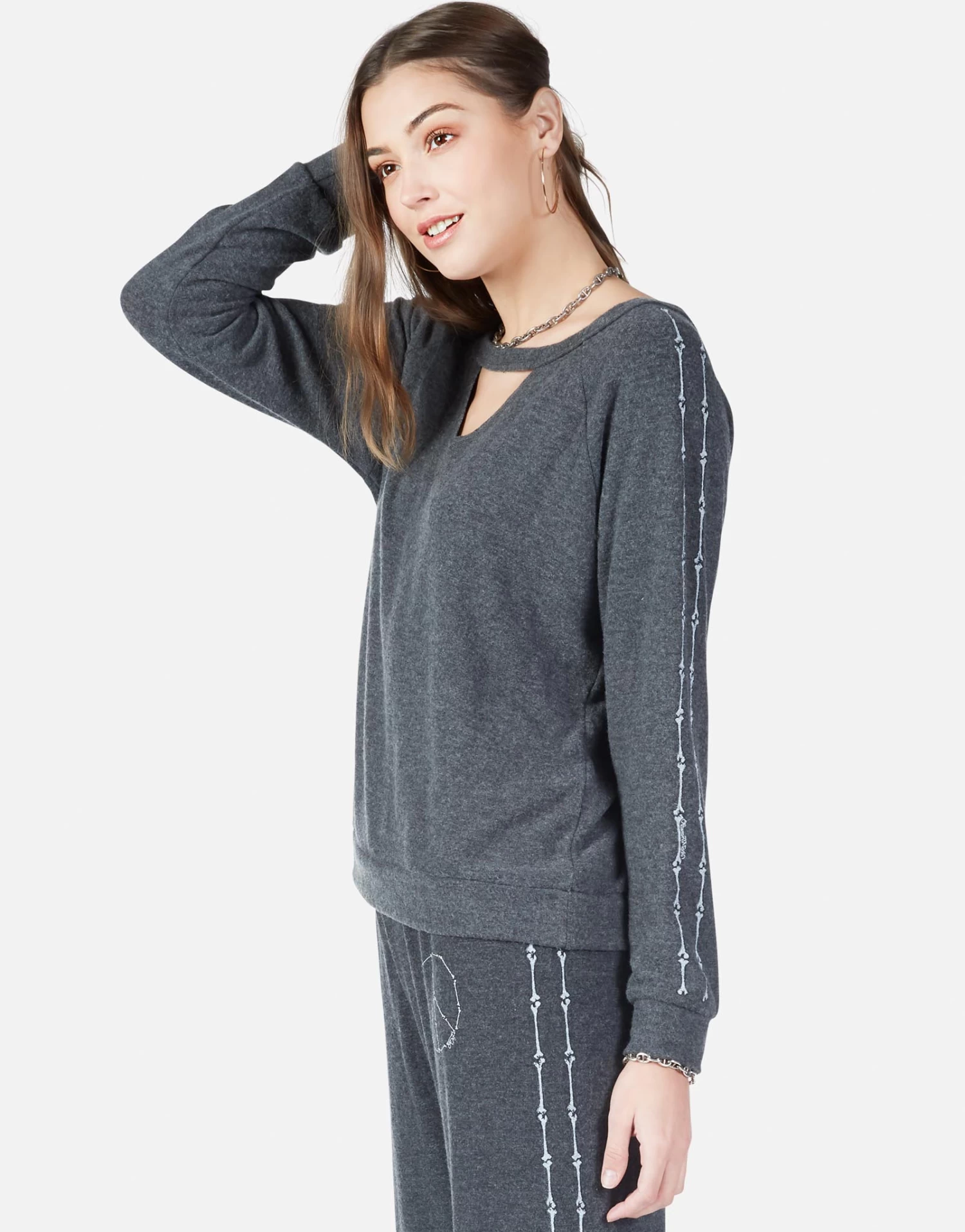 Inner Peace Bones Printed on Ultra Soft Lightweight Pullover in Black by Lauren Moshi.